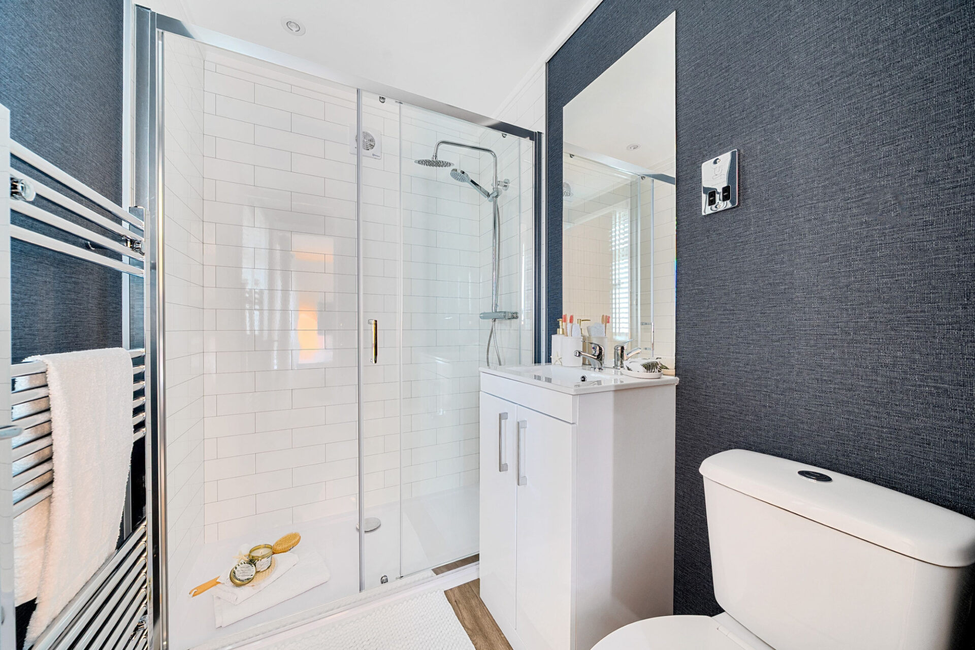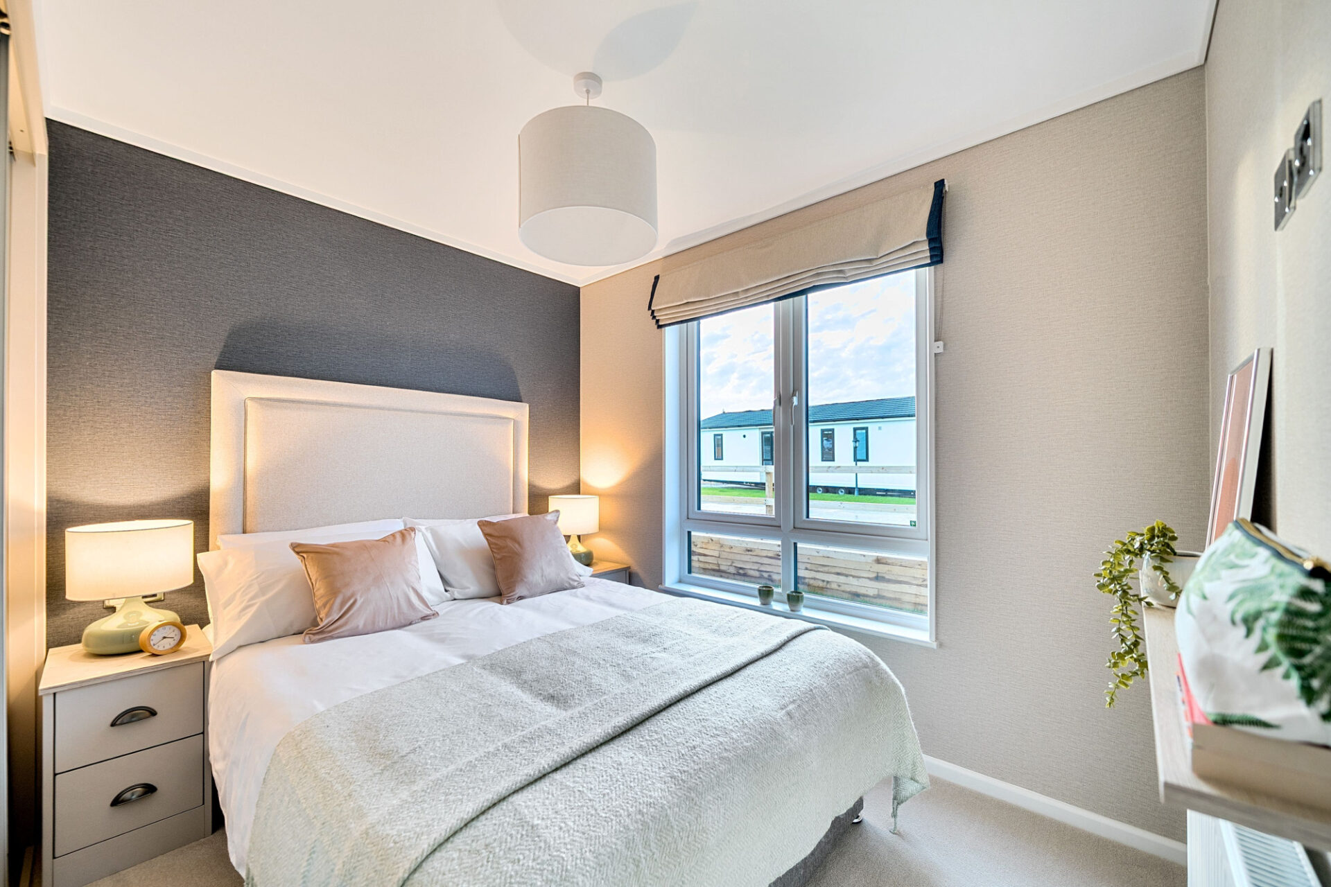 This brand-new, modern-furnished Sofia (42'x20') luxury park home is perfect for those looking for a detached, easy-to-maintain, bungalow-style property. The home has a spacious kitchen with integrated appliances and a breakfast bar, dining area and comfortable living area with electric fireplace. There are two double bedrooms with fitted wardrobes, an en suite and a bathroom.