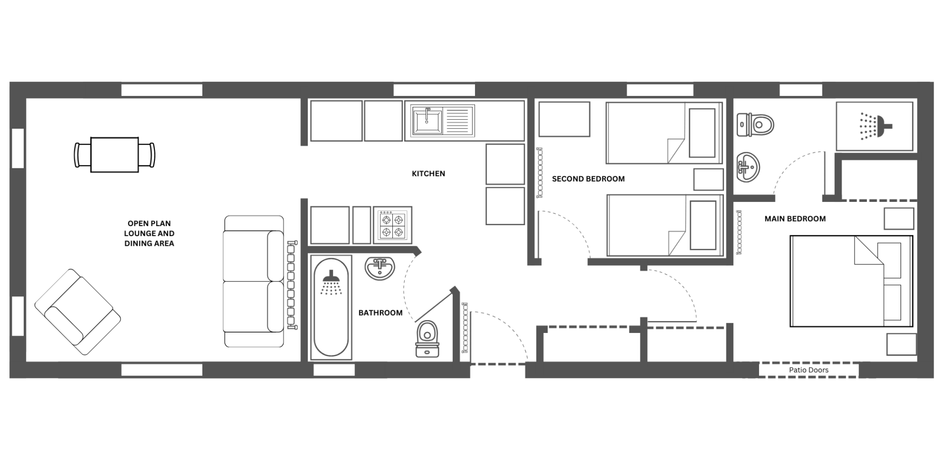 This brand new, fully furnished modern Manor Berkeley Plus (45'x14') park home is perfect for those looking for a detached, easy to maintain, bungalow-style retirement property. The home boasts the latest construction techniques, design, and guarantees and enjoys modern full furnishings and integrated appliances. The home has a spacious kitchen, living and dining area, two bedrooms and two bathrooms.