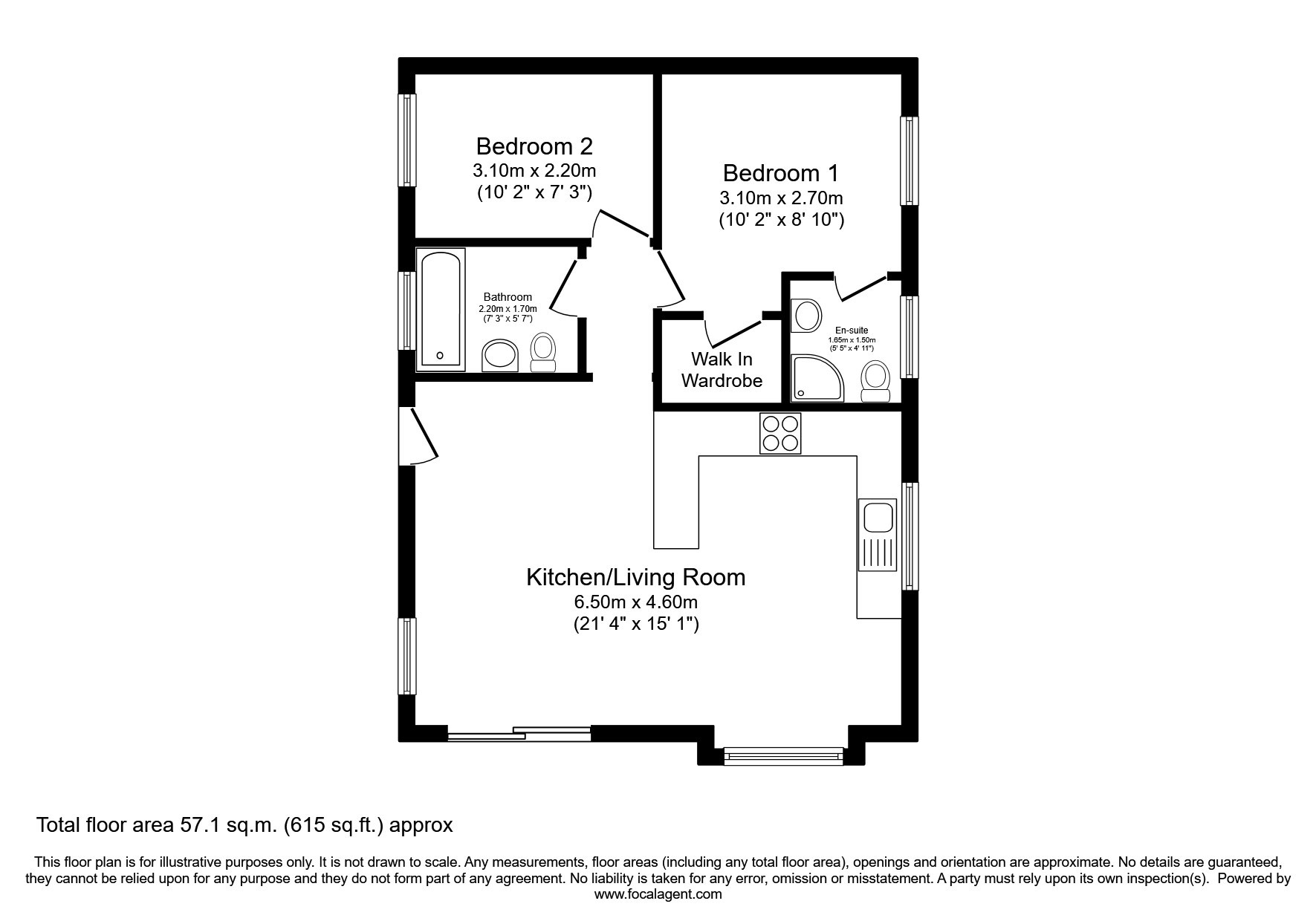 - Two bedrooms
