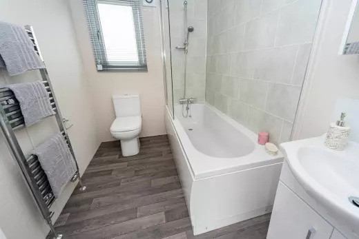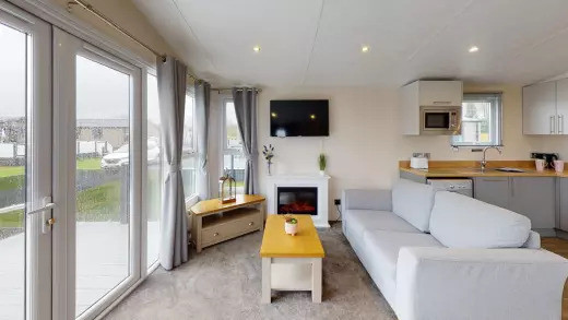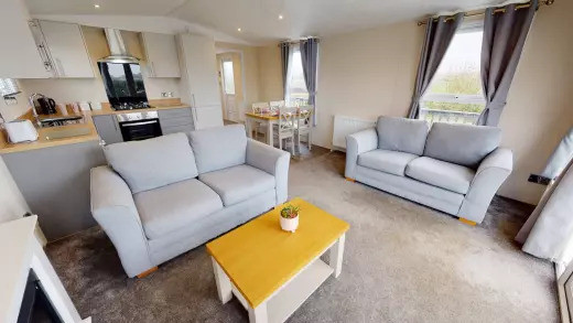 This brand-new, modern-furnished Norwood (41'x12') luxury lodge is perfect for those looking for a detached, easy-to-maintain, bungalow-style property. The lodge is light and spacious, with vaulted ceilings and free standing furniture. The kitchen dining and living space is all open plan, with large windows and doors leading outside. There are two bedrooms, an en suite to the master bedroom and a bathroom.