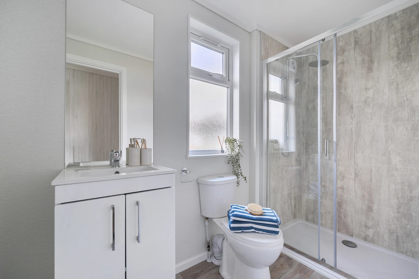 This brand-new, modern-furnished Nova park home (42'x20') is perfect for those looking for a detached, easy to maintain, bungalow style property. The home features a modern kitchen and dining room with integrated appliances, and a comfortable living room. There are two double bedrooms, an en suite and a bathroom.