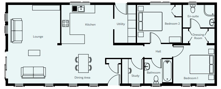 This brand new, modern-furnished Omar Newmarket park home (50'x20') is perfect for those looking for a detached, easy to maintain, bungalow-style property. The home features comfortable open plan kitchen and dining area, and a comfortable living room with large windows. There is a study, two double bedrooms, an en suite and a bathroom.