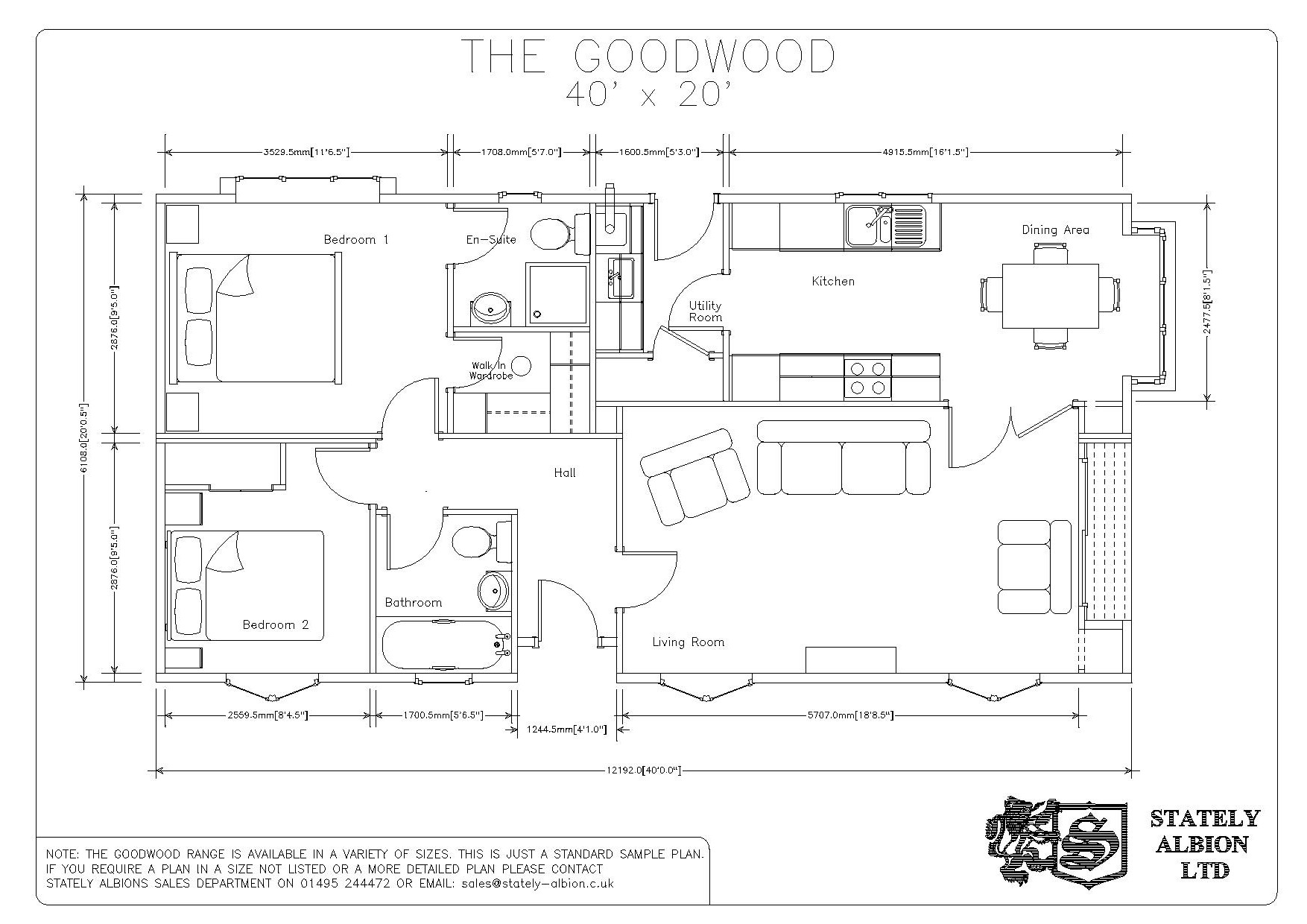 This brand new, modern-furnished Stately Goodwood (40'x20') luxury park home is perfect for those looking for a detached, easy to maintain, bungalow-style property. The home features a spacious kitchen and dining room with integrated appliances, a comfortable living room, two double bedrooms, an en suite and a bathroom. The home also has decking with stunning views and parking for 2 cars.