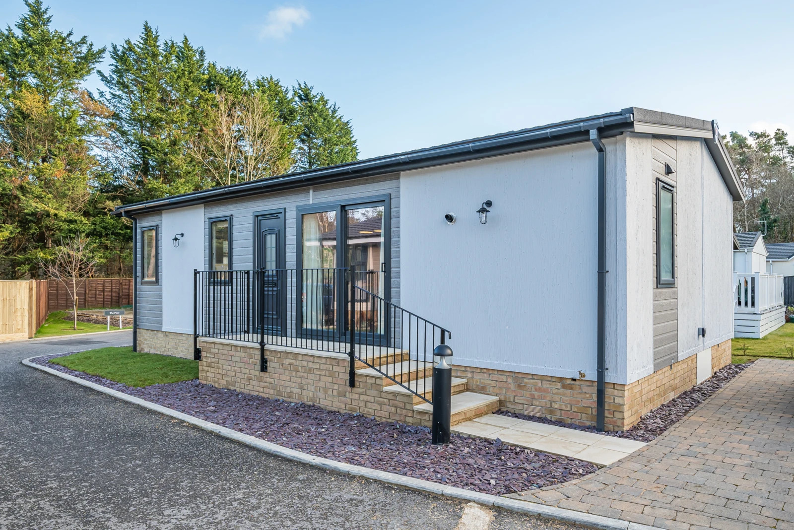 This brand new, modern-furnished Pemberton Rivendale (36'x20') luxury park home is perfect for those looking for a detached, easy to maintain, bungalow-style property. The home has a spacious kitchen with integrated appliances and an island, dining area and living room with patio doors and an electric fireplace. There are two double bedrooms, an en suite and a bathroom.
