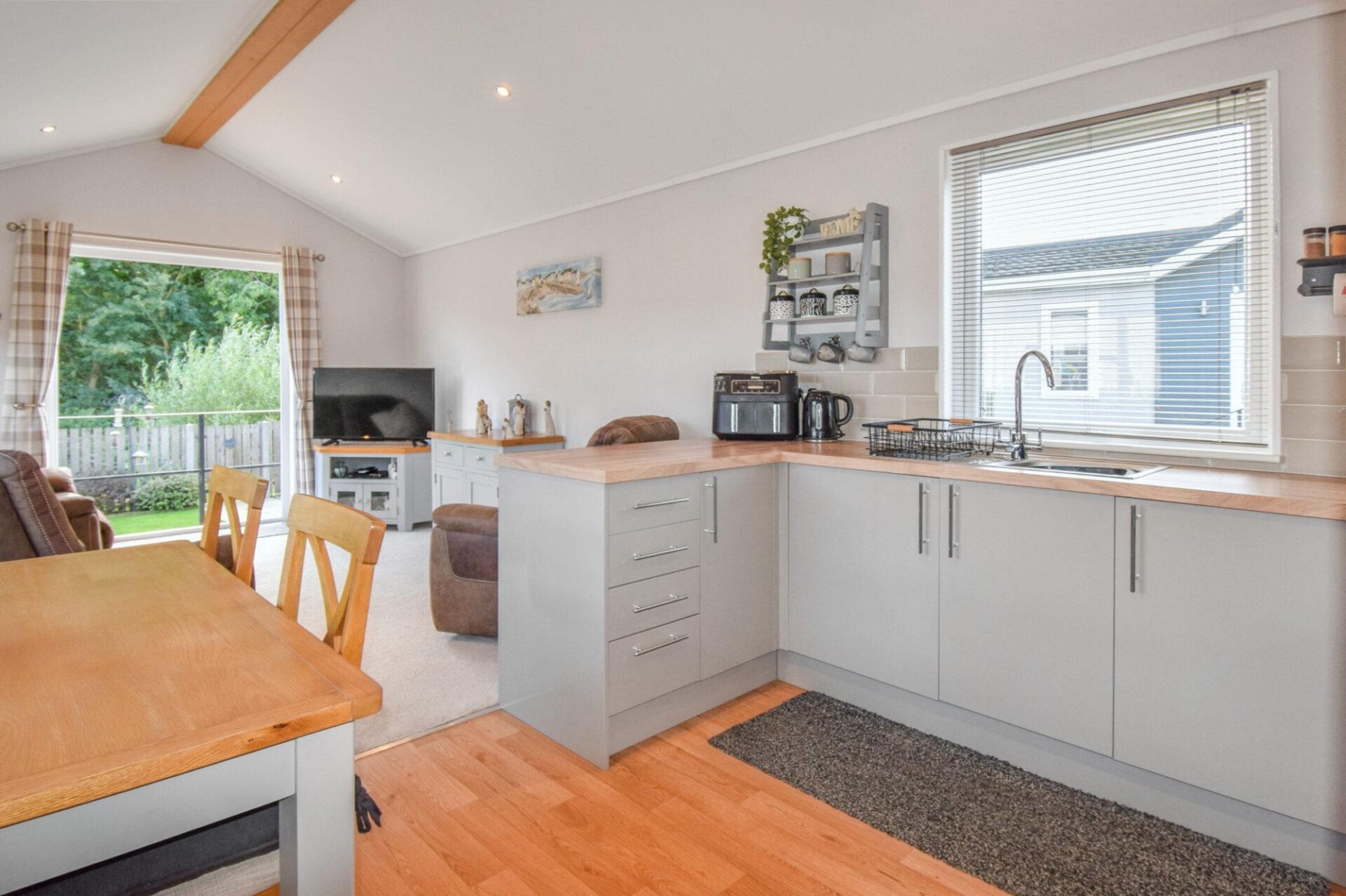 This pre-owned, well maintained Prestige Accolade (40'x12') park home is perfect for those looking for a detached, easy to maintain, bungalow-style property. The home has an open plan kitchen, living and dining area, with French doors leading out to the garden. The home has a double bedroom with a fitted wardrobe and a shower room.