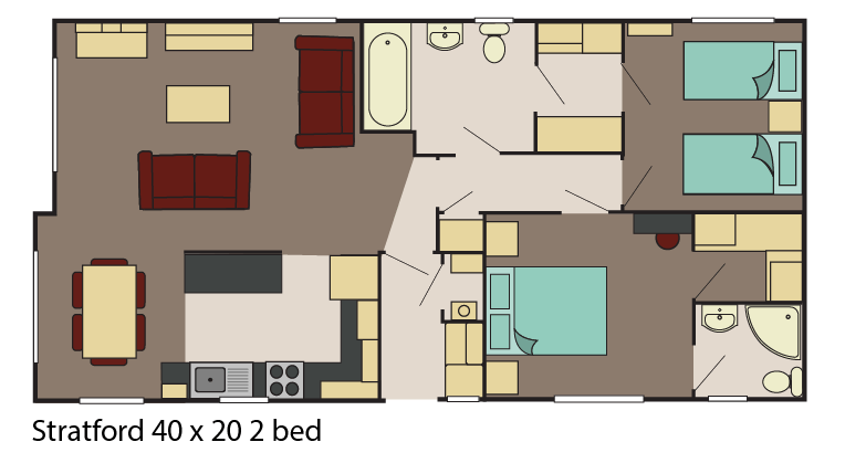 This brand new, modern-furnished Delta Stratford (40'x20') luxury lodge is perfect for those looking for a detached, easy to maintain, bungalow-style property. The lodge has an open plan kitchen, dining and living room, two bedrooms, an en suite and a bathroom.