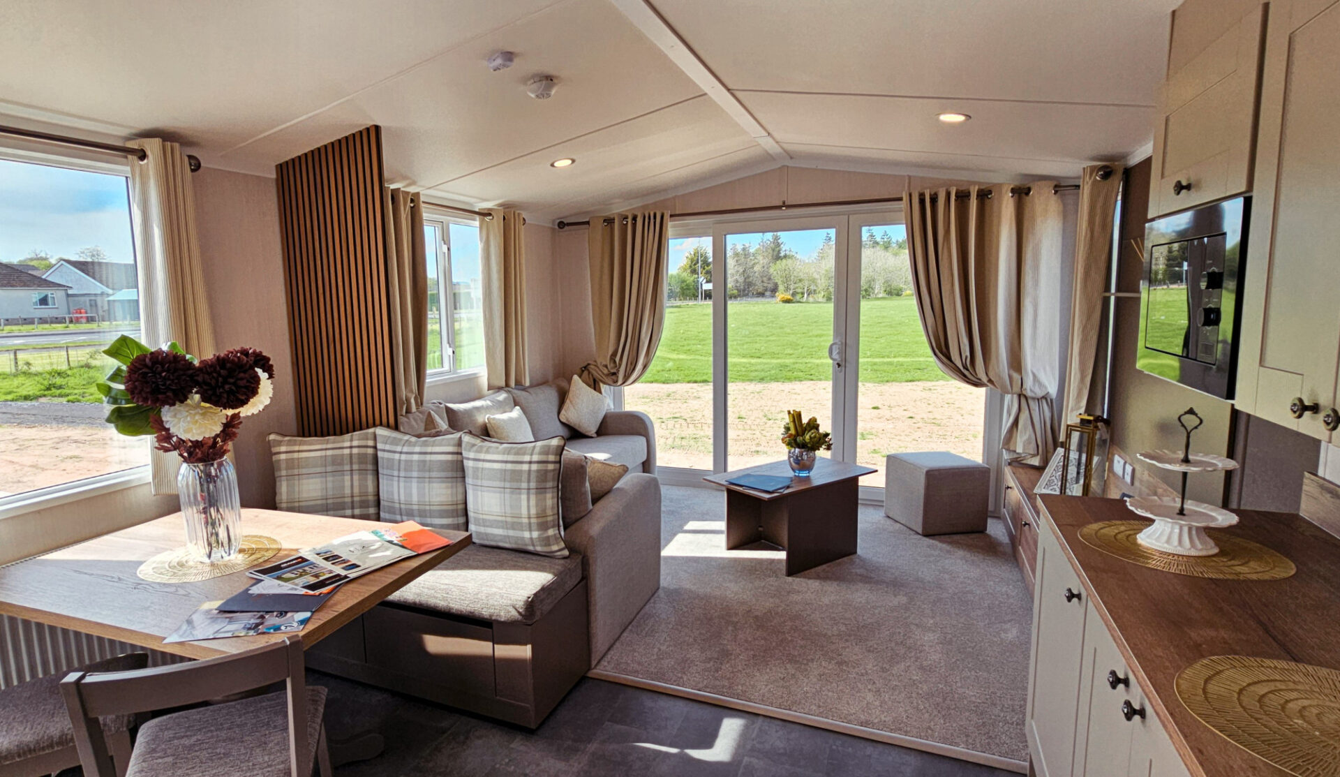 This brand new, modern-furnished Swift Morlaix (36'x12') luxury lodge is perfect for those looking for a detached, easy to maintain, bungalow-style property. The lodge has an open plan kitchen, dining and living room, two bedrooms, an en suite and a bathroom.