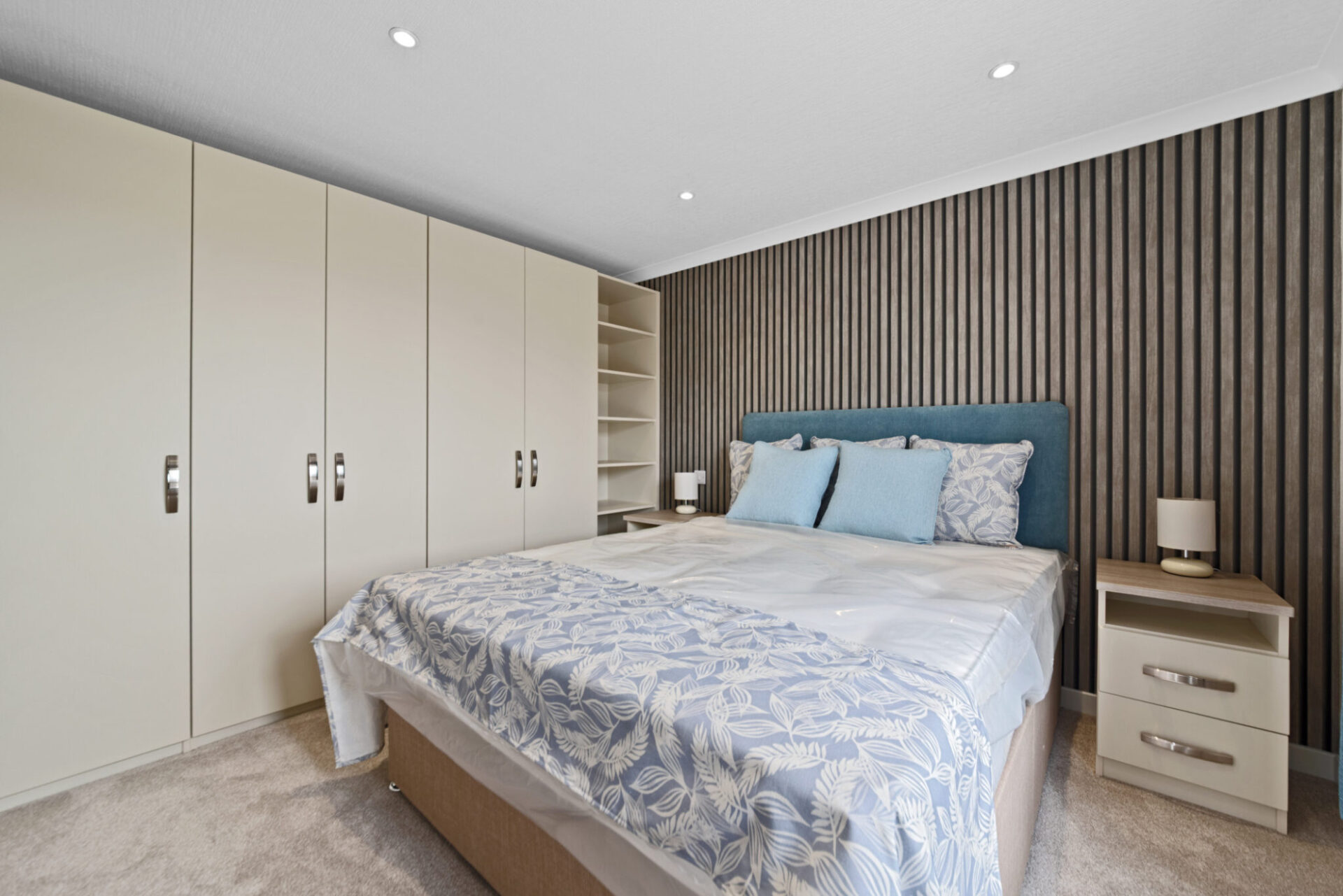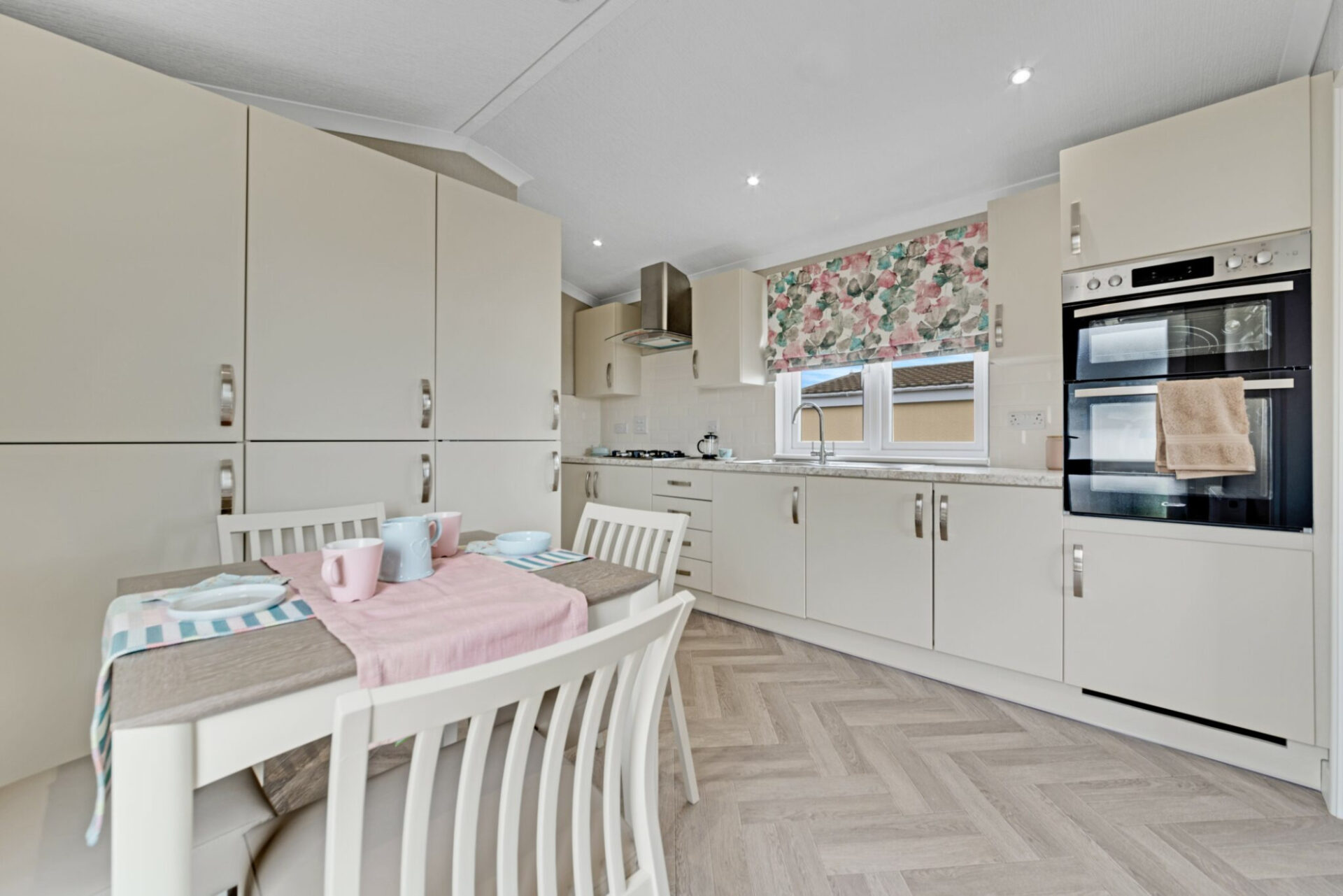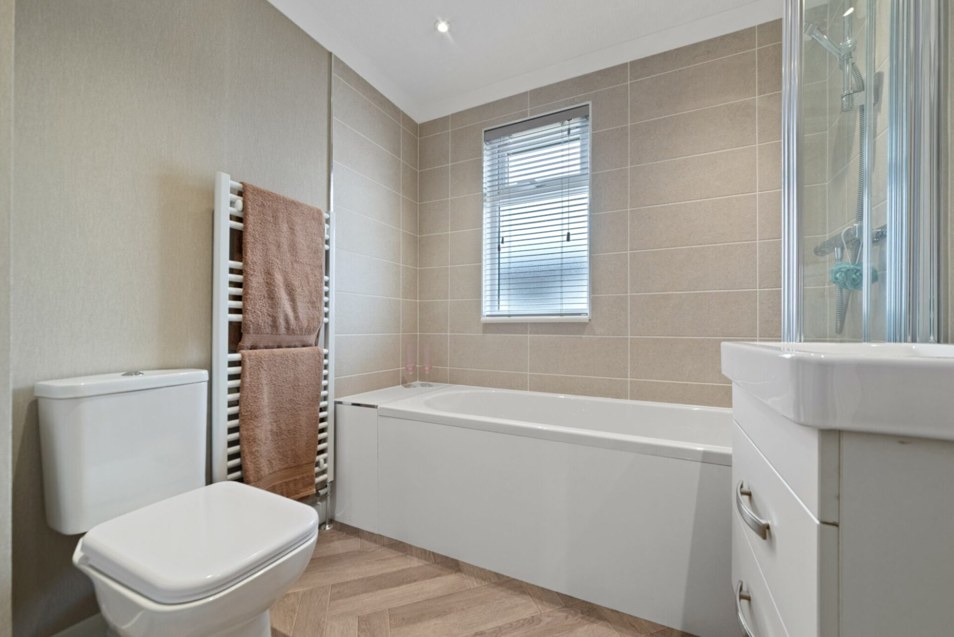 This brand new, modern-furnished Omar Image (50'x12') luxury park home is perfect for those looking for a detached, easy to maintain, bungalow style retirement property. This home has a semi open-plan layout with large windows. The home boasts a fully fitted kitchen and dining area, with a spacious separate living area. Bedroom 1 is a large double room with a wooden feature wall and built-in storage, Bedroom 2 is also a double with built-in storage. This lovely home also features a main bathroom with a shower over the bath.