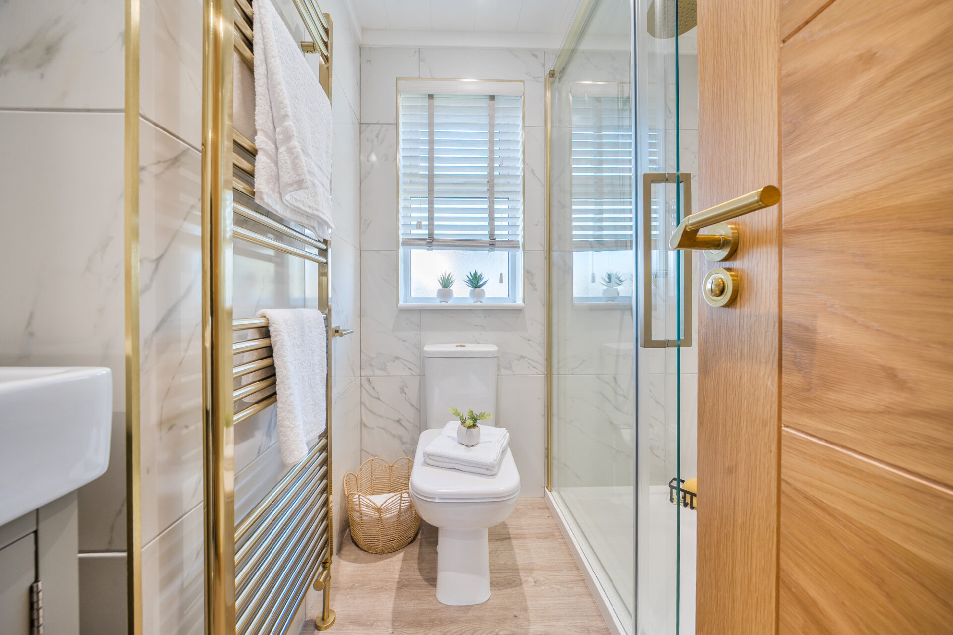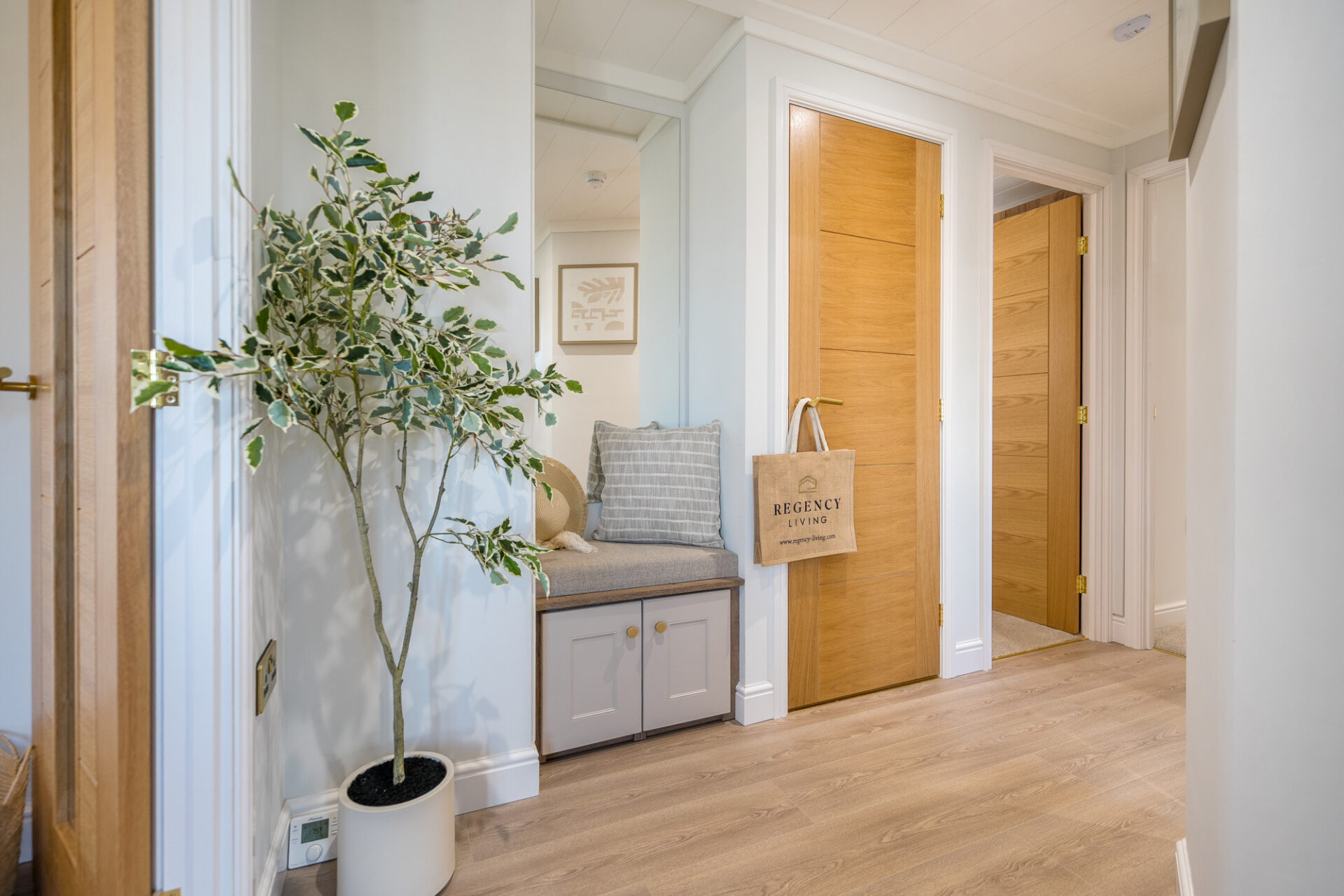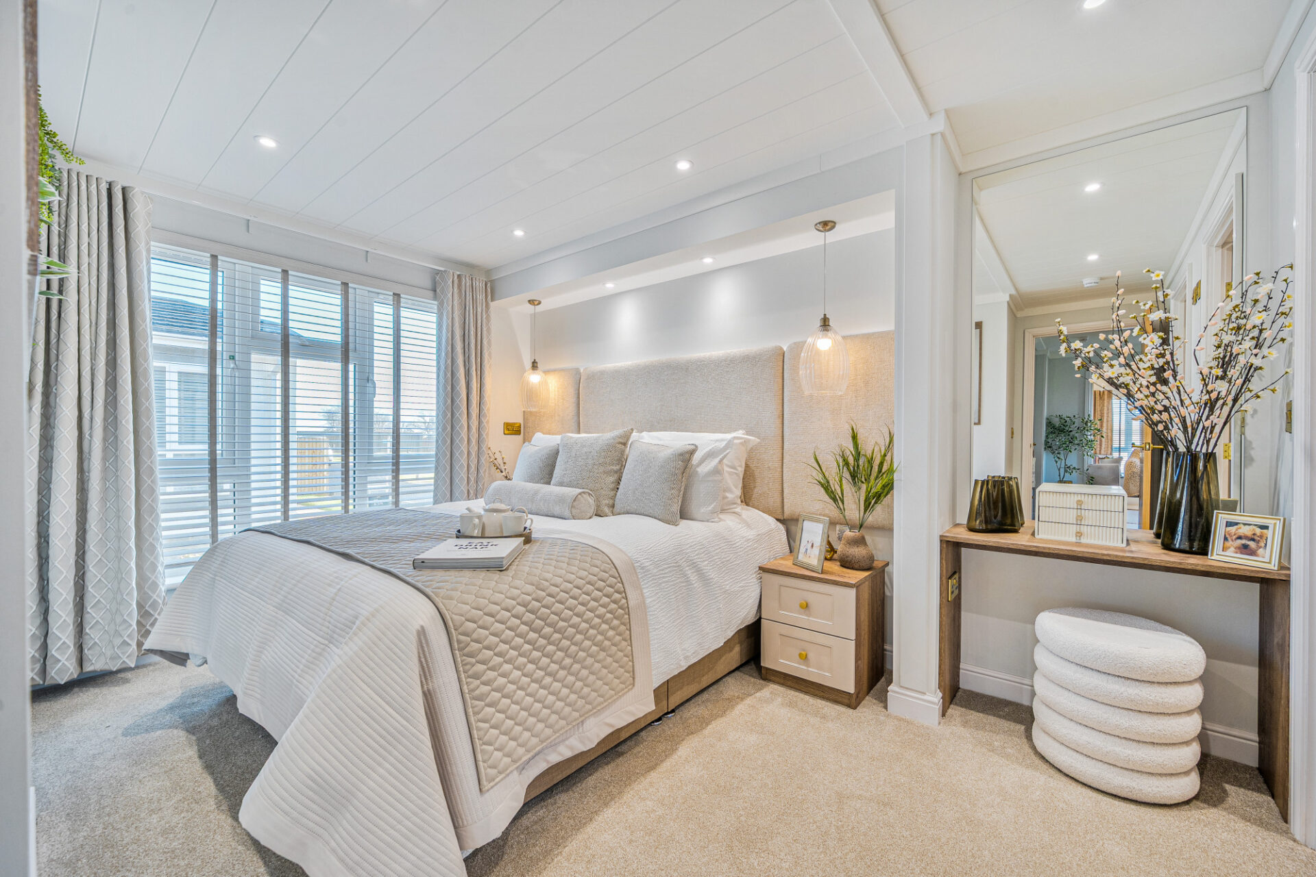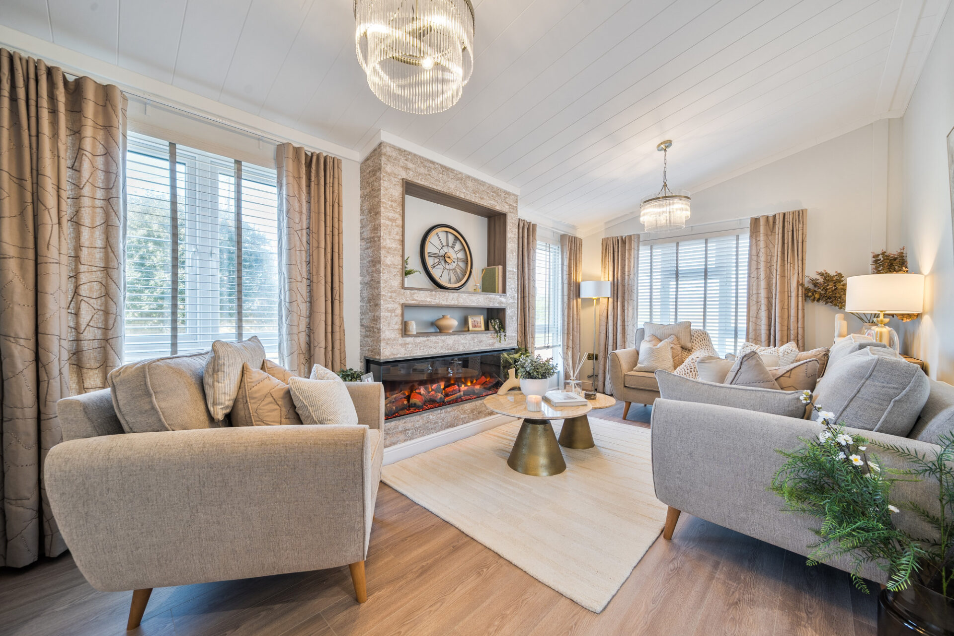 This brand new, modern-furnished luxury Omar Anniversary (40'x20') park home is perfect for those looking for a detached, easy-to-maintain, bungalow-style property. The home has a spacious kitchen with integrated appliances, dining area and comfortable living room. The master bedroom has an en suite and dressing area, there is a second double bedroom and a bathroom.