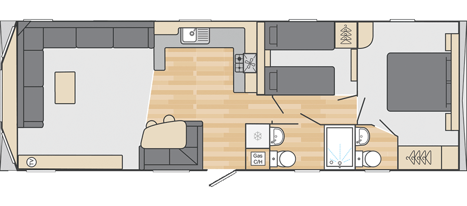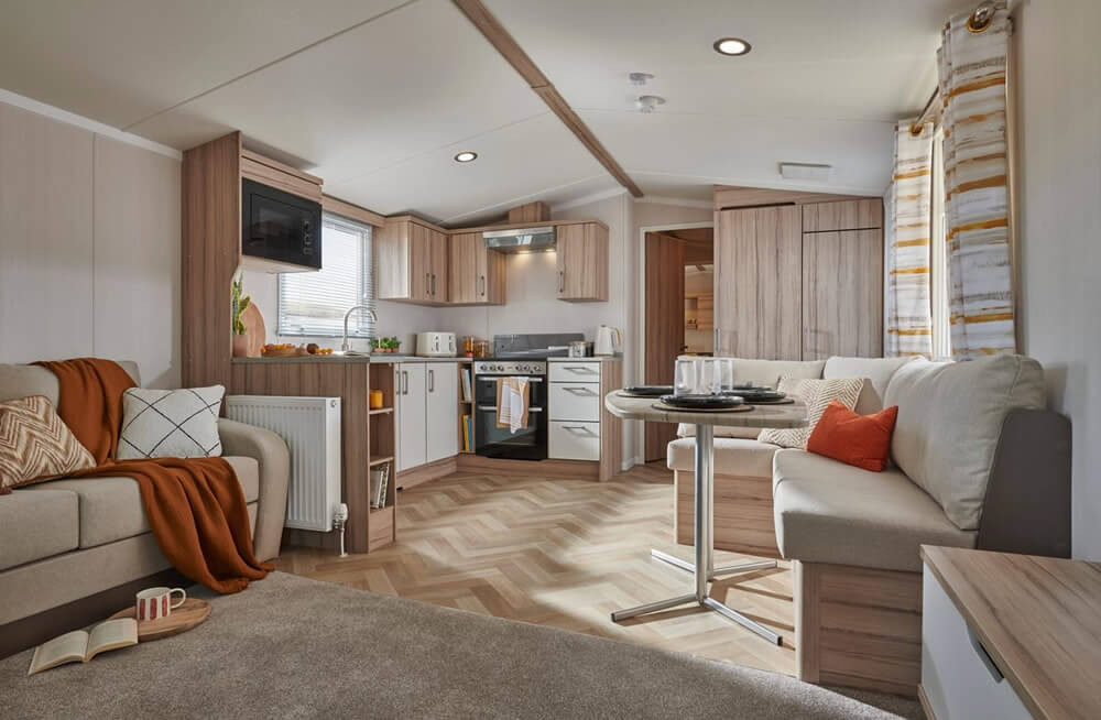 This brand-new, modern-furnished Swift Loire (35'x12') luxury lodge is perfect for those looking for a detached, easy-to-maintain, bungalow-style leisure property. The home has an open plan kitchen, dining room and living room, with integrated appliances and comfortable furniture, there are two bedroom, one shower room and an extra toilet.