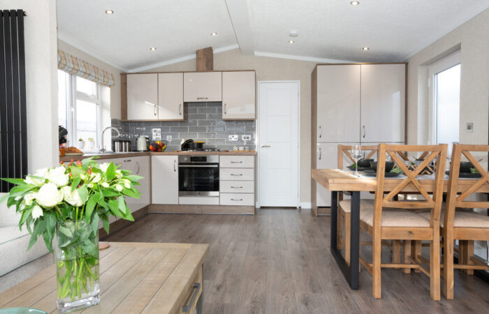 This brand new, modern-furnished Omar Arden (45'x15') luxury park home is perfect for those looking for a detached, easy to maintain, bungalow-style property. The home has an open plan layout to the kitchen, dining and living rooms, there are two bedrooms and two bathrooms.