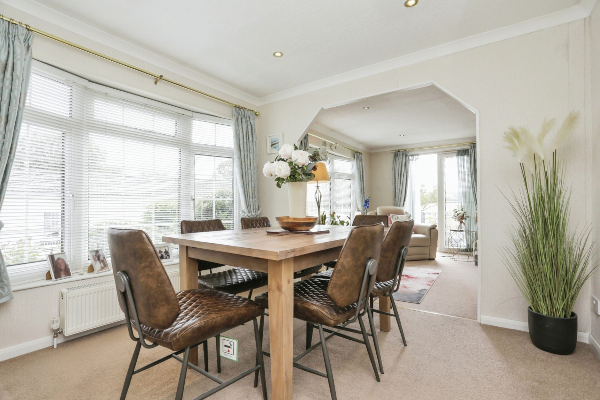This pre-owned Homeseeker (48'x20') park home is perfect for those looking for a detached, easy to maintain, bungalow style retirement property. The home has a spacious kitchen and utility room, dining area and living room with large windows and an electric fireplace. There are two double bedrooms, both with fitted wardrobes, and the master bedroom has an en suite. The family bathroom also has a bath tub. The home home has gas central heating and a garage with light and power.