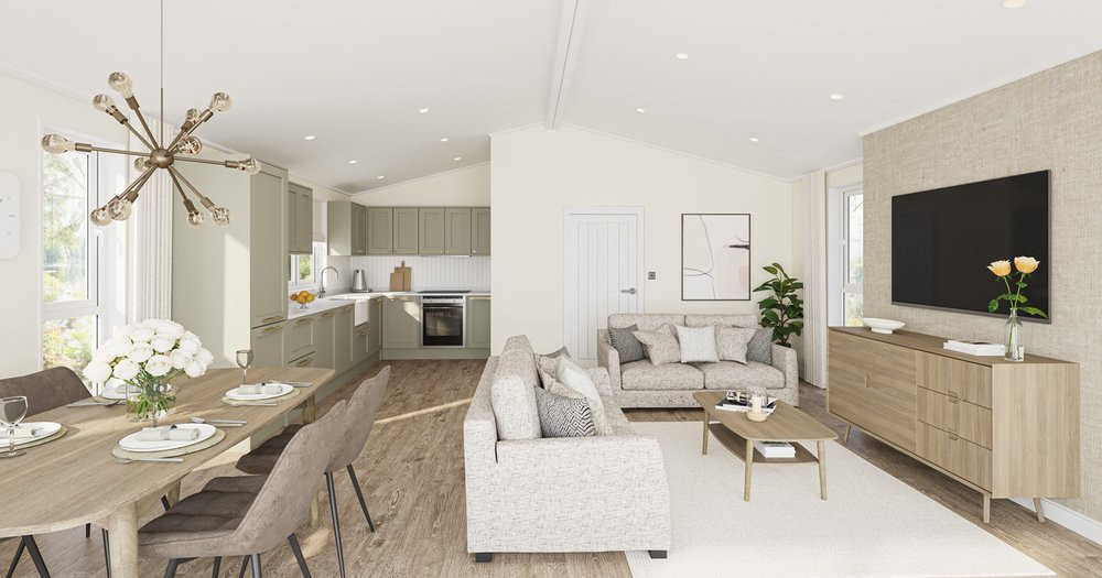 This brand new, modern-furnished Harbur H4 (40'x20') luxury park home is perfect for those looking for a detached, easy to maintain, bungalow style retirement property. The home features a modern, fitted kitchen with integrated appliances that lead into a living room/dining area with comfortable furniture. There are two double bedrooms, an en suite and a bathroom.