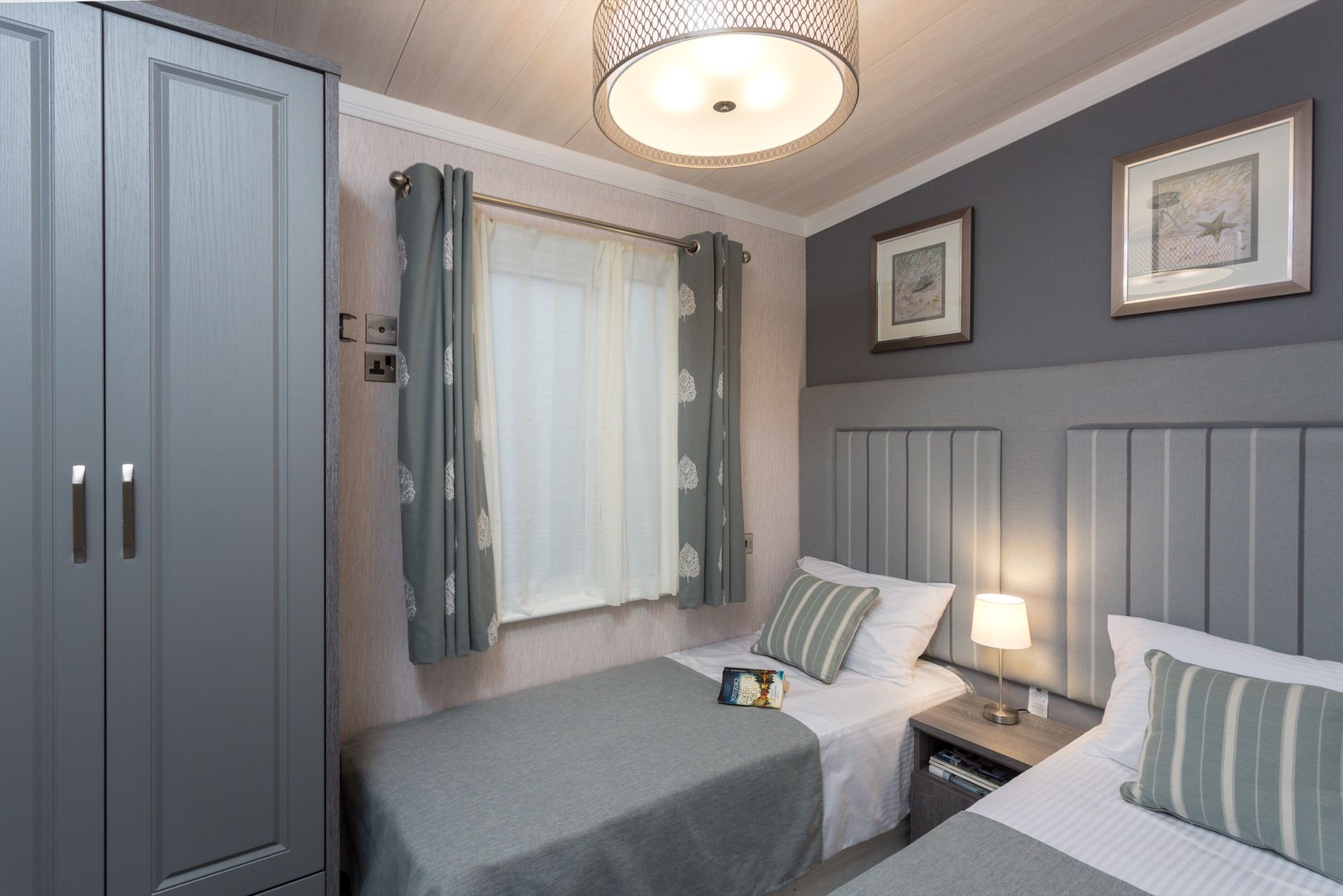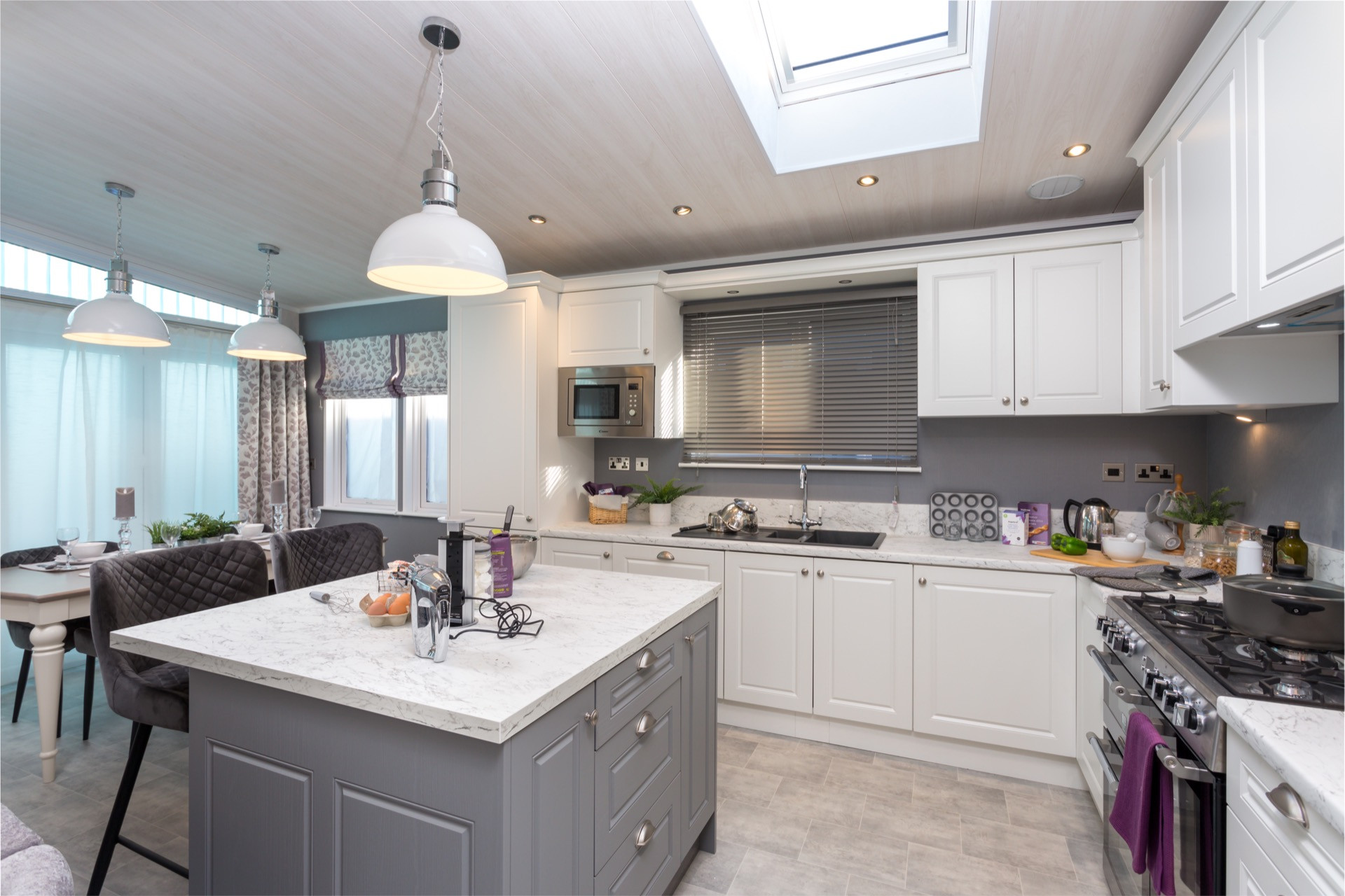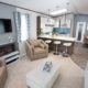 This brand new, modern-furnished Pemberton Glendale (40'x14') luxury park home is perfect for those looking for a detached, easy to maintain, bungalow-style property. The home has an open plan layout, a kitchen with integrated appliances and island, and a comfortable living room with French doors and an electric fireplace. There are two bathrooms, an en suite and a family bathroom.