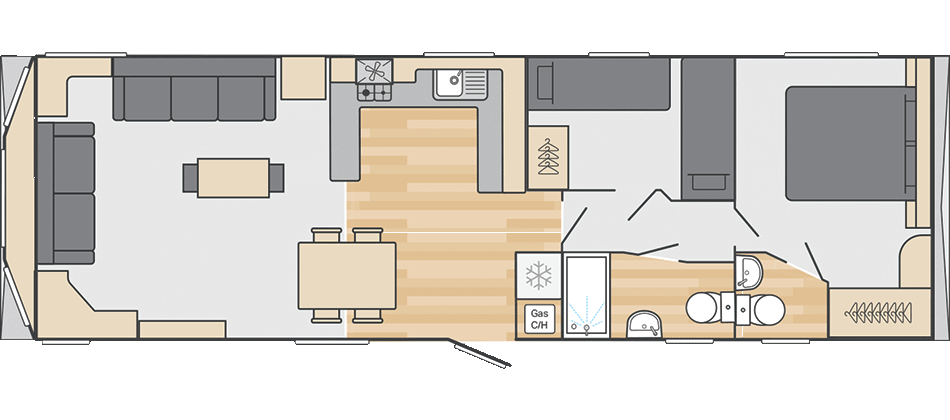 This brand new, modern-furnished Swift Provence Outlook (38'x12') luxury lodge is perfect for those looking for a detached, easy to maintain, bungalow-style holiday property. The lodge is built to a high specification, with an open plan kitchen and living area, two bedrooms, and en suite toilet and a bathroom.