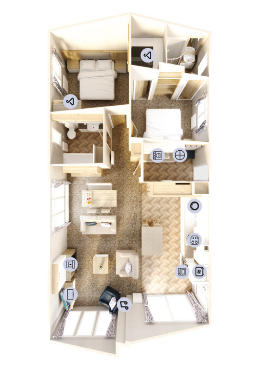 This brand-new, modern-furnished Willerby Pinehurst (40'x20') luxury park home is perfect for those looking for a detached, easy-to-maintain, bungalow-style property. The home has an open plan kitchen, dining room and living room, two bedrooms, an en suite and a bathroom. Each home has two car parking spaces per home.