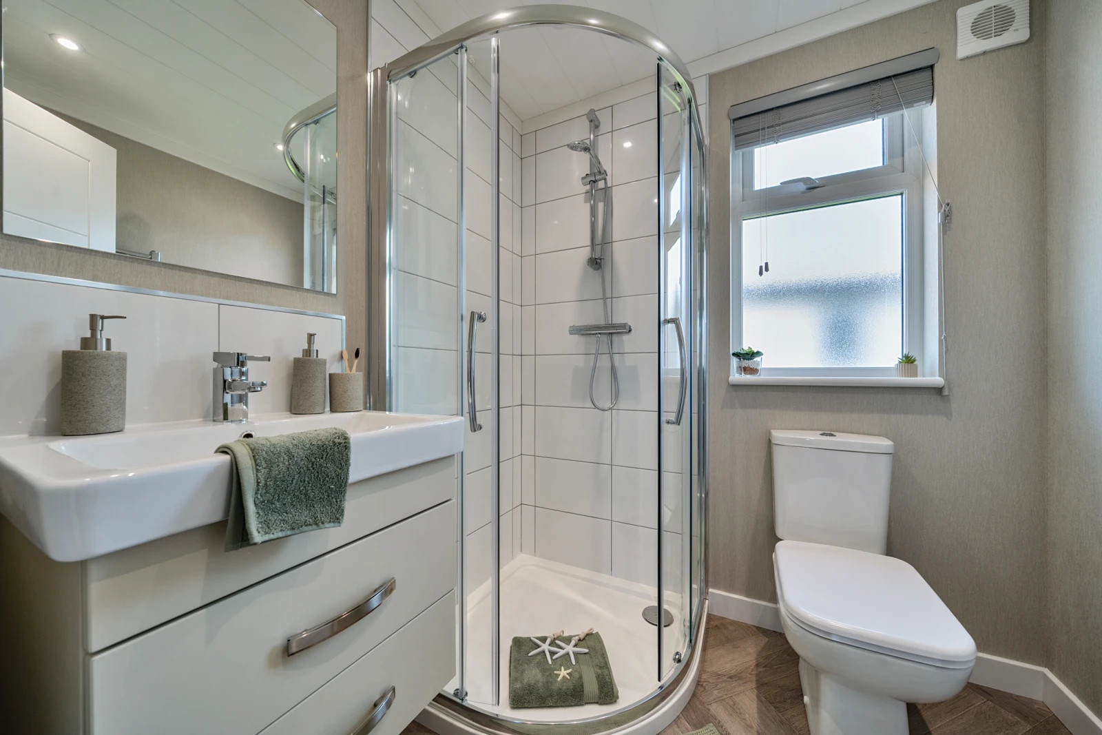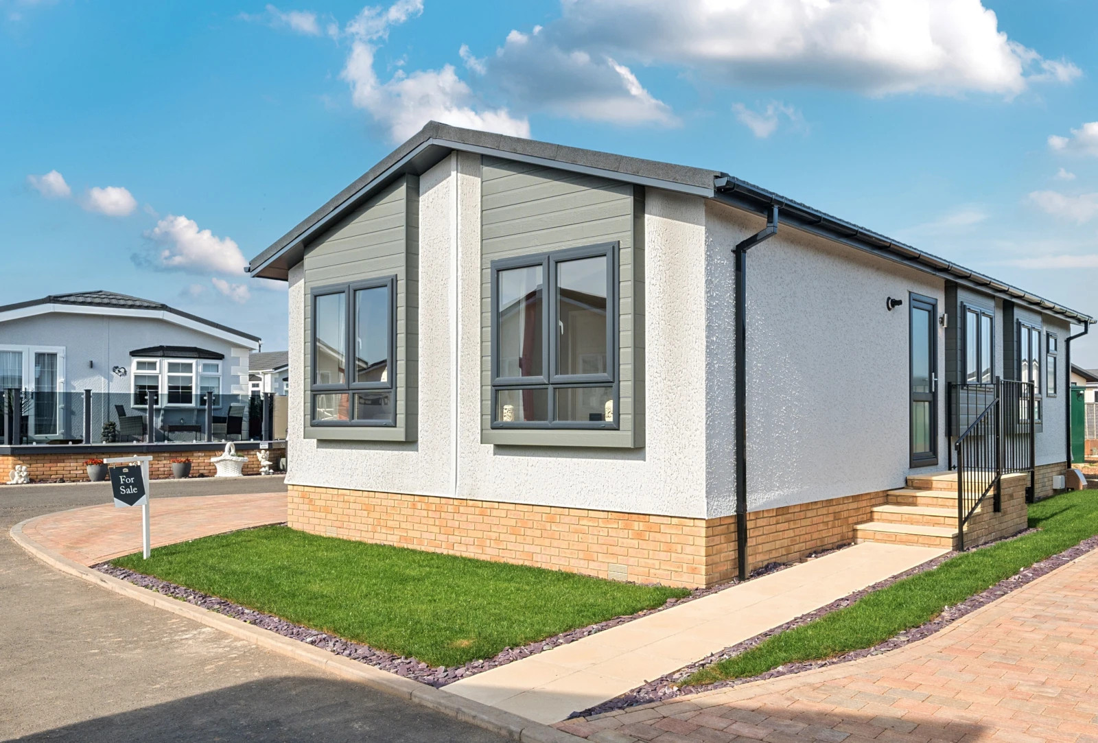 This brand new, modern-furnished Omar Image (40'x20') park home is perfect for those looking for a detached, easy to maintain, bungalow-style property. The home has a spacious kitchen and dining area with integrated appliances, comfortable living room, two double bedrooms, an en suite and a bathroom.