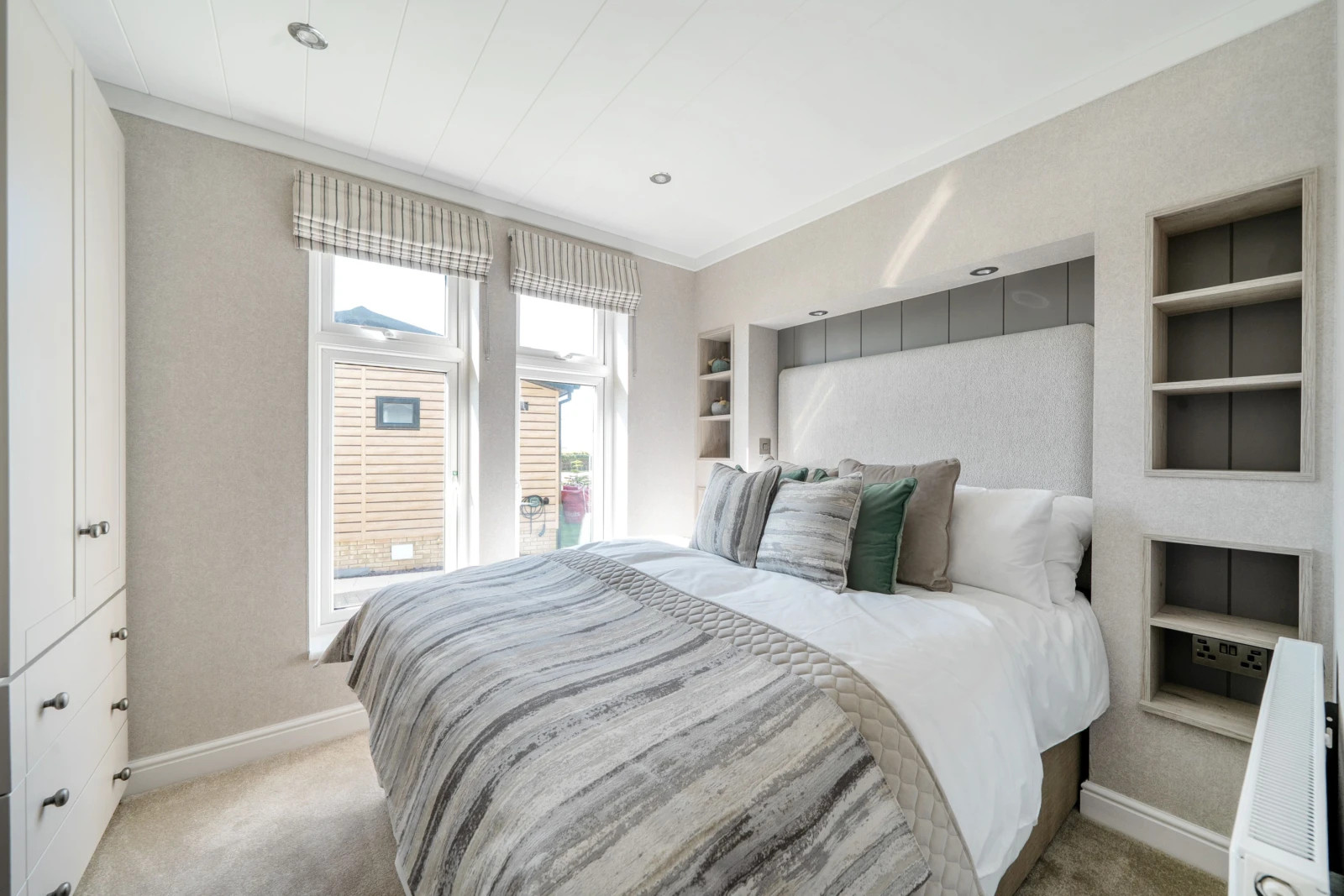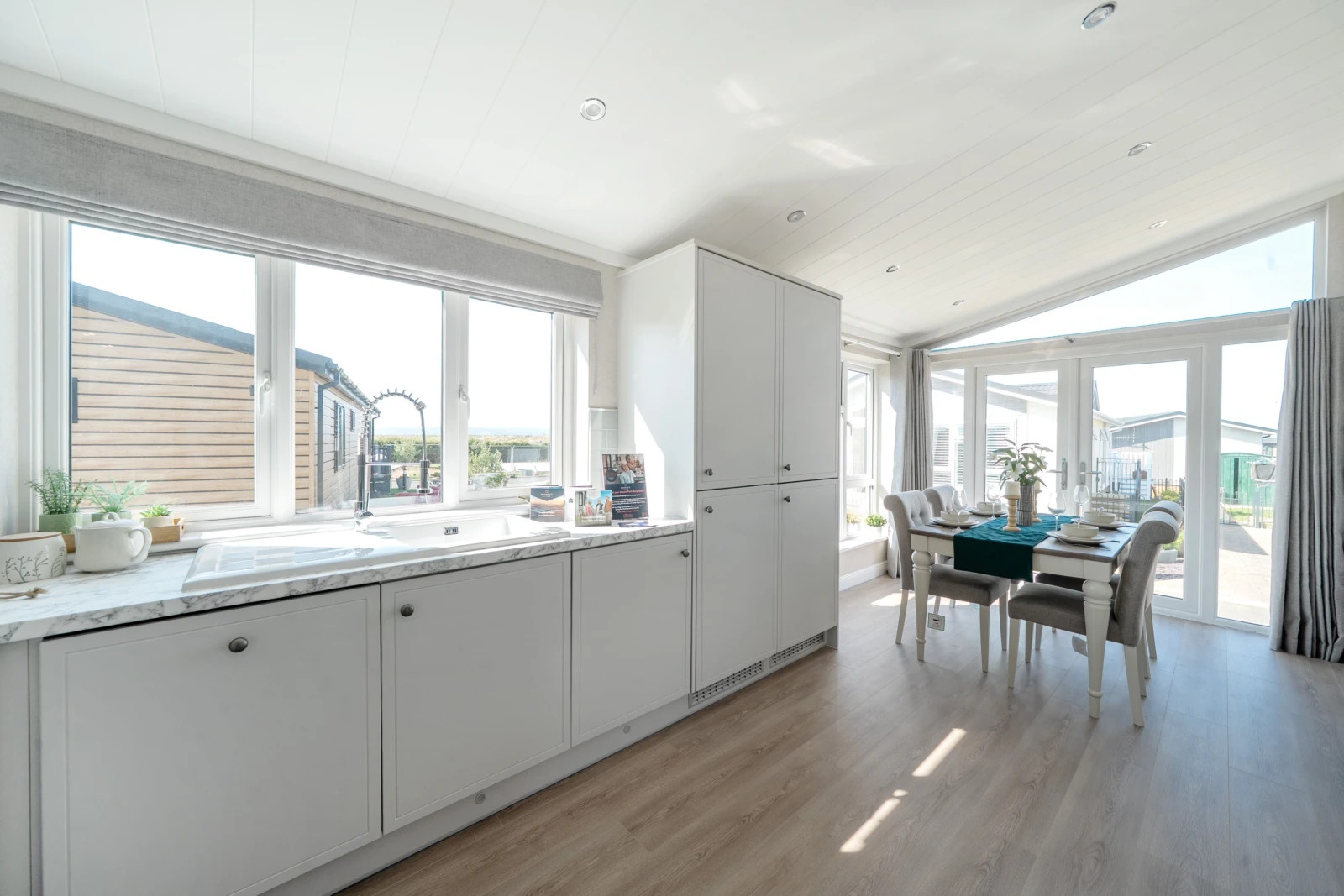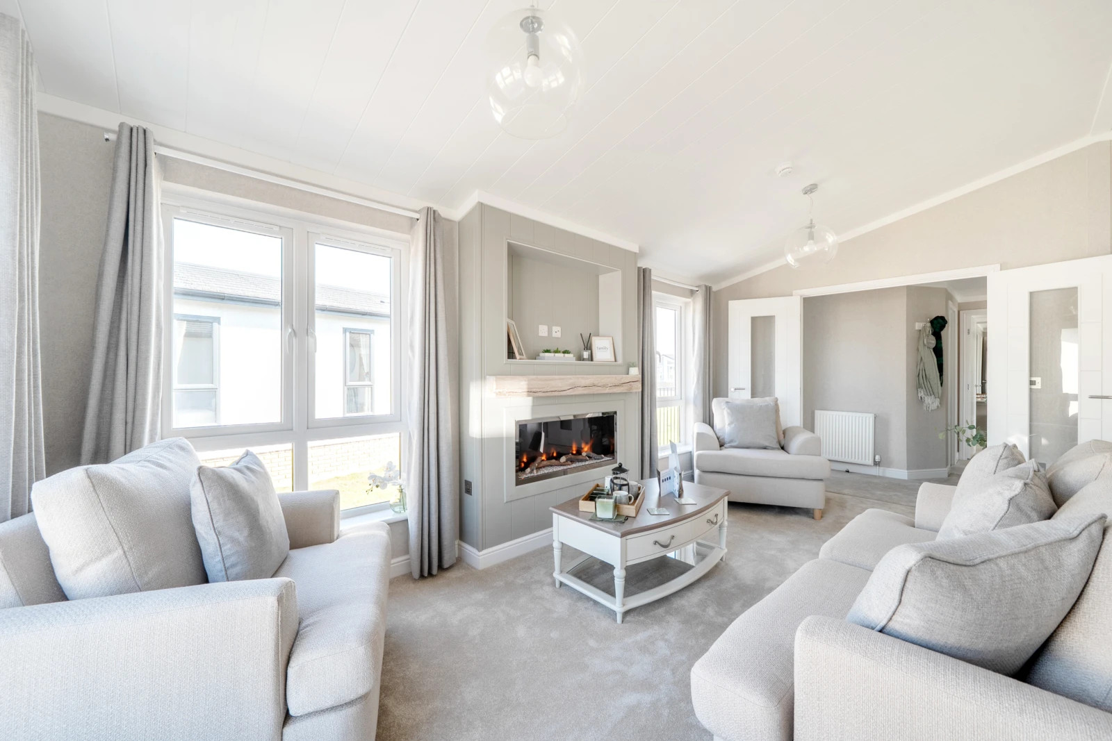 This brand new, modern-furnished Omar Anniversary (40'x20') park home is perfect for those looking for a detached, easy to maintain, bungalow-style property. The home has a spacious kitchen and dining area with integrated appliances, comfortable living room, two double bedrooms, an en suite and a bathroom.