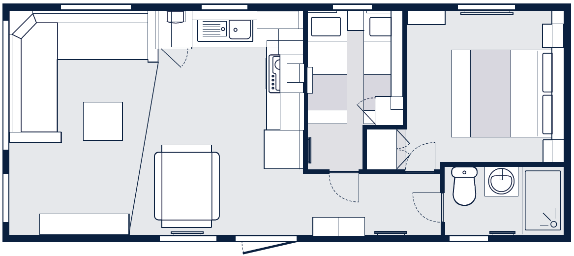 This brand new, modern-furnished Victory Stonewood (41'x12') luxury lodge is perfect for those looking for a detached, easy to maintain, bungalow-style property. The lodge features an open plan kitchen, dining and living area, with modern and comfortable furniture, and two bedrooms.