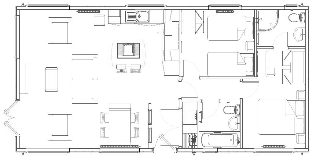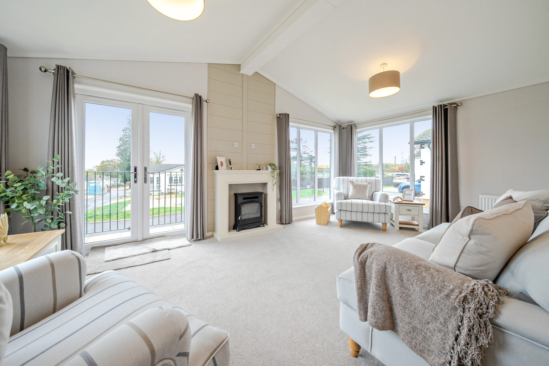 This brand new, modern-furnished Burleigh (40'x20') park home is perfect for those looking for a detached, easy to maintain, bungalow style property. The home has an open plan kitchen, dining and living area. The modern kitchen has integrated appliances and the living area has an electric fireplace and patio doors. There is one double bedrooms, a second twin bedroom an en suite and a bathroom.
