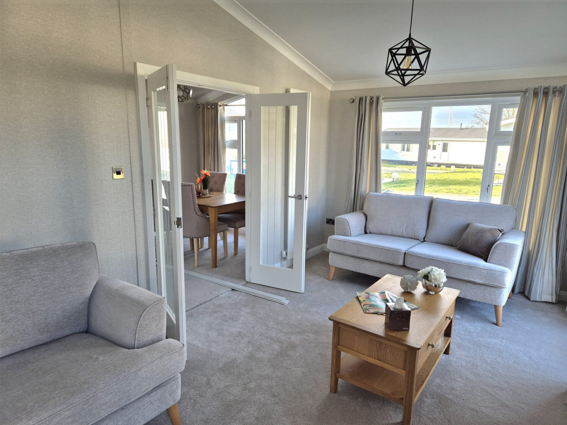 This brand new, modern-furnished Willerby Delamere (40'x20') luxury park home is perfect for those looking for a detached, easy to maintain, bungalow-style property. The home has modern kitchen with integrated appliances, a comfortable living room, two double bedrooms and two bathrooms.