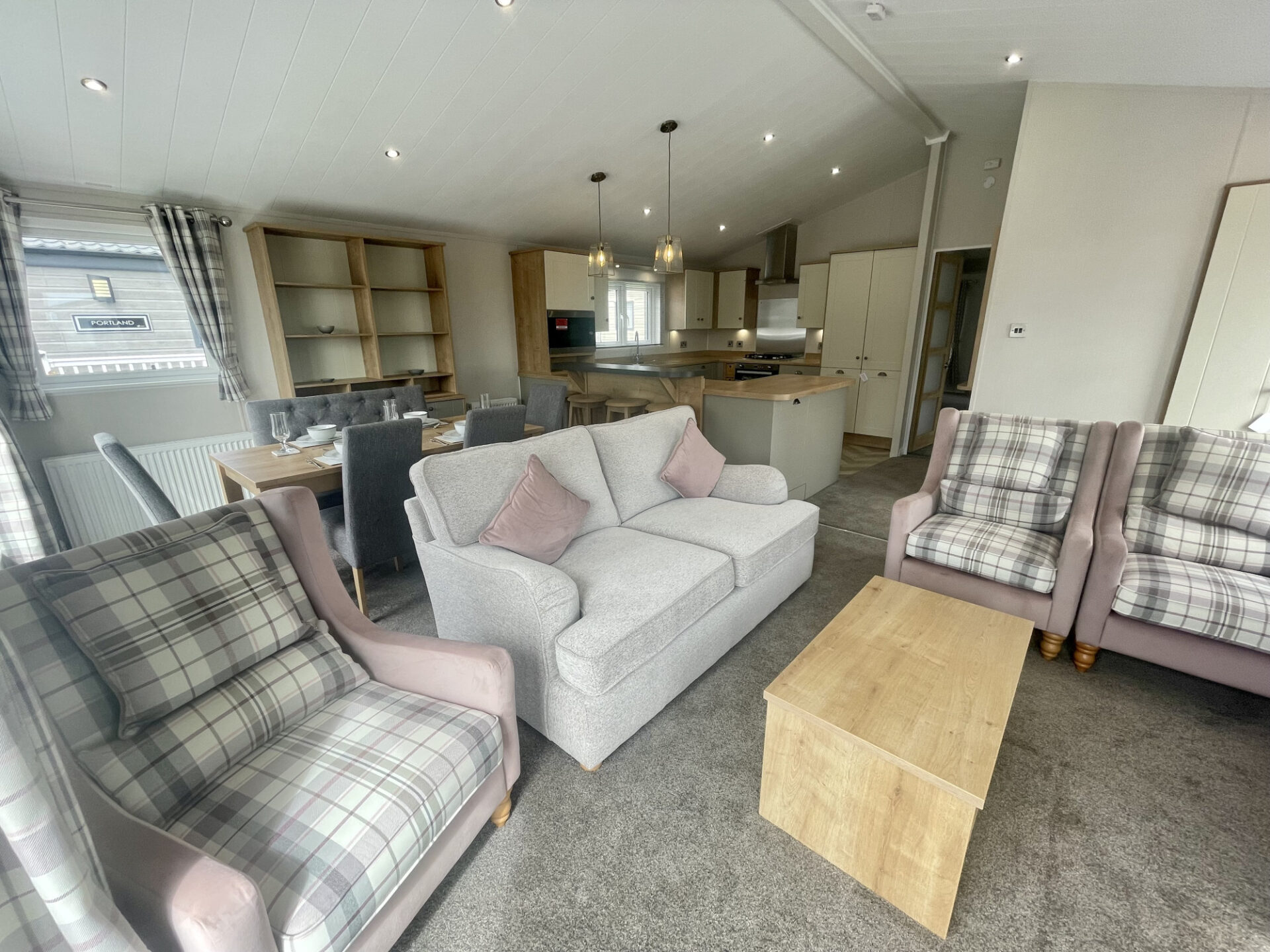 This brand new, modern-furnished Portland (40'x20') luxury lodge is perfect for those looking for a detached, easy to maintain, bungalow-style property. The lodge has an open plan layout, a modern kitchen with integrated appliances, comfortable living area and French doors leading onto the decking. There are three bedrooms and two bathrooms.
