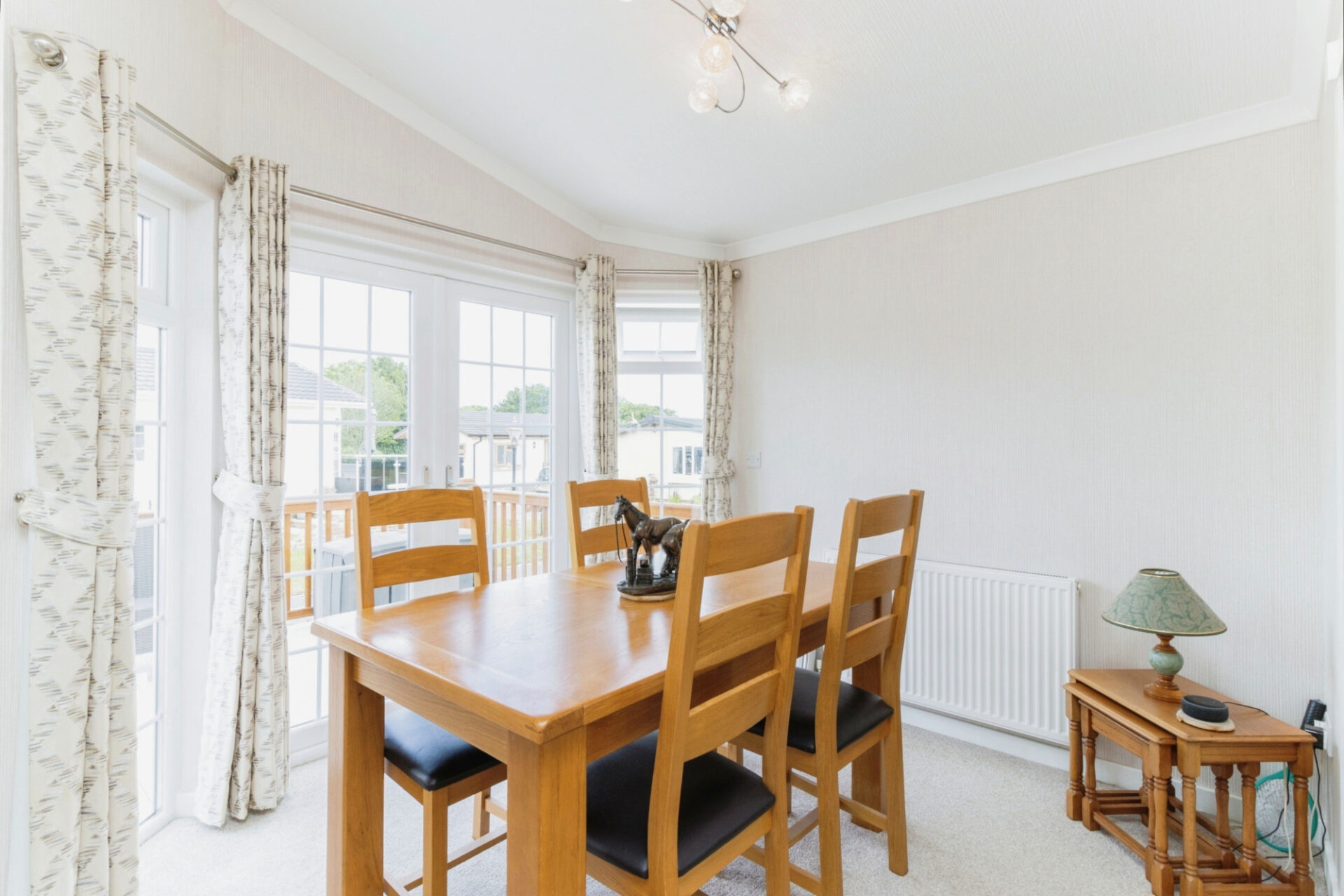 This pre-owned Omar Middleton park home (45'x20') is perfect for those looking for a detached, easy to maintain, bungalow-style property. The home interior features a spacious,well-appointed kitchen and utility, dining and living area, study, two double bedrooms, a family bathroom and a luxurious en suite. The exterior includes a decking overlooking the park and a driveway.