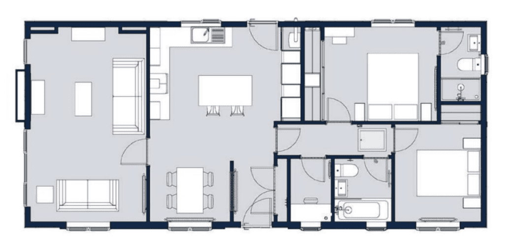 This brand-new, modern-furnished Prestige Residence (40'x20') luxury park home is perfect for those looking for a detached, easy-to-maintain, bungalow-style property. The home has a spacious kitchen with integrated appliances, dining area and comfortable living room. The are two double bedrooms, an en suite and a bathroom.