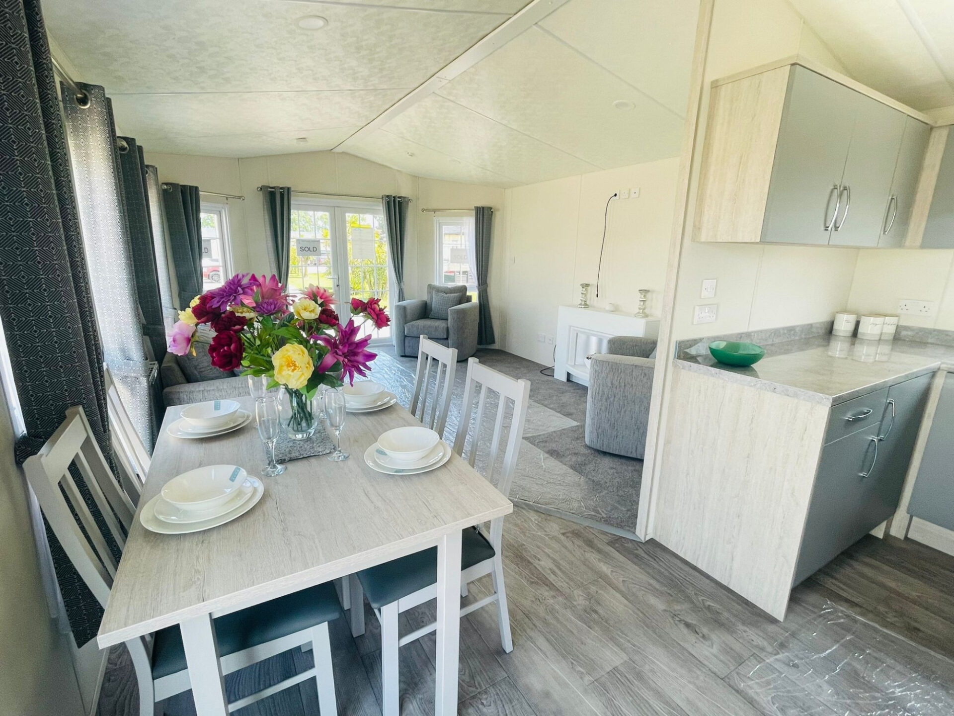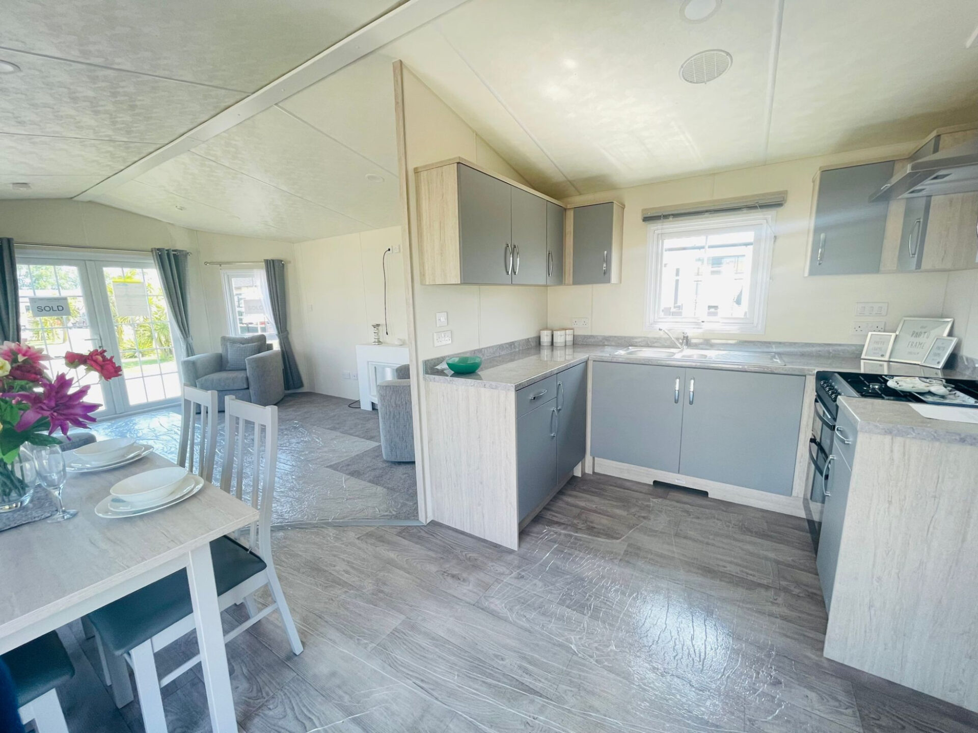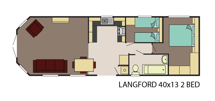 This brand new, modern-furnished Delta Langford (42'x16') luxury lodge is perfect for those looking for a detached, easy to maintain, leisure property. The lodge has a semi-open plan kitchen, dining and living area, two bedrooms and two bathrooms. The landscaped exterior boasts a block paved driveway, and decking can be added at owners expense.