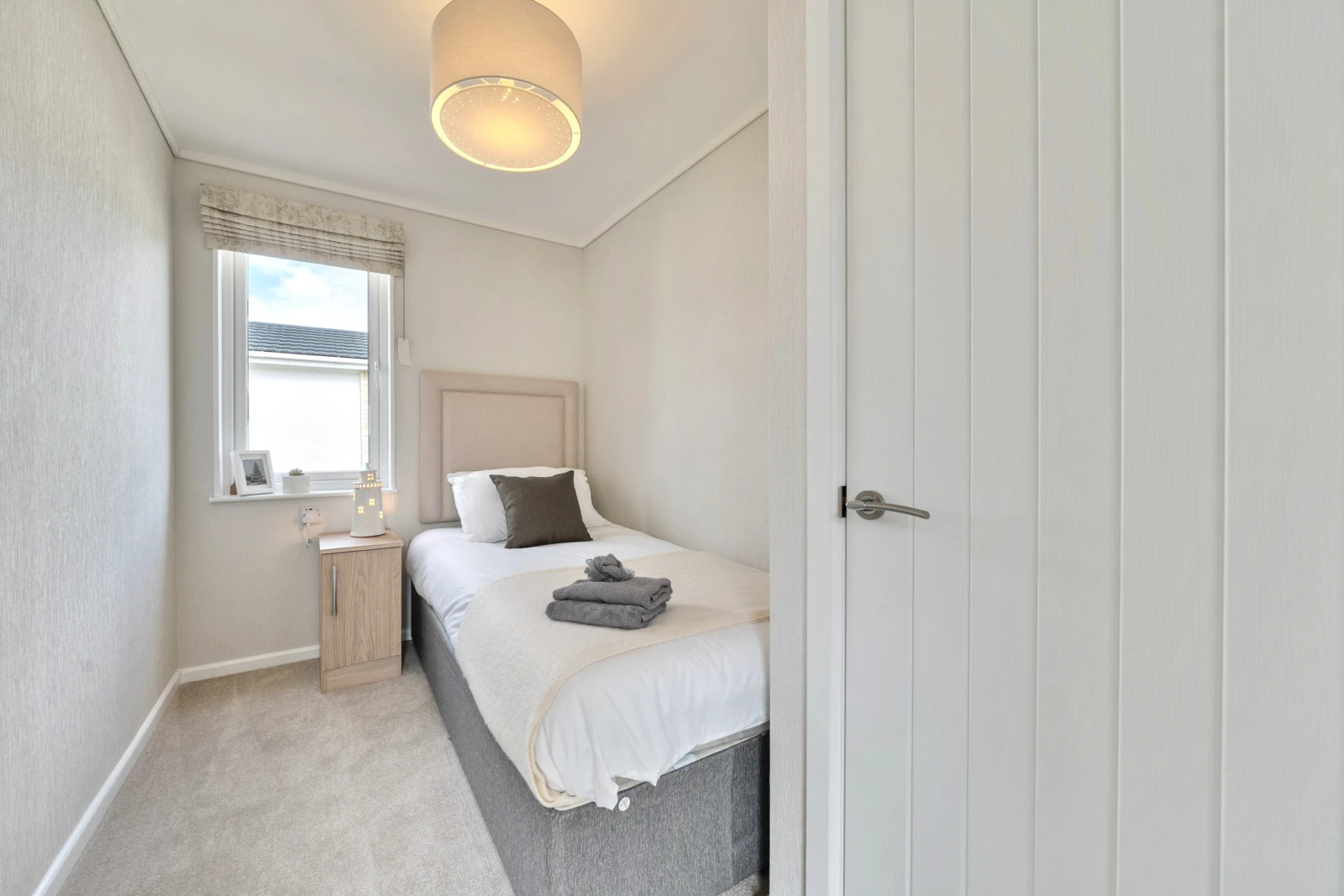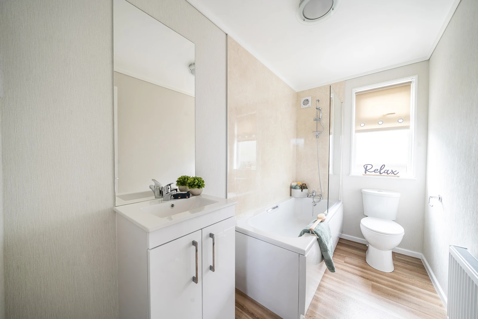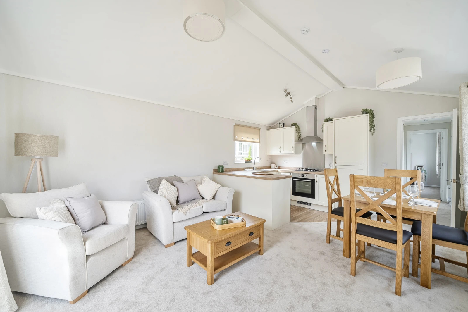 This brand new, modern-furnished luxury Sonata (40'x14') park home is perfect for those looking for a detached, easy to maintain, bungalow style property. The home has an open plan kitchen, dining and living room, with patio doors and integrated appliances. There is one double bedroom, a twin bedroom and a bathroom.