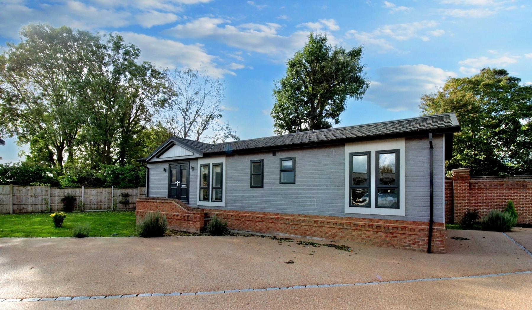 This brand new, modern-furnished Wessex Canford luxury park home is perfect for those looking for a detached, easy to maintain, bungalow-style retirement property. The landscaped exterior boasts a large dorma with feature lighting, garden area and parking space.