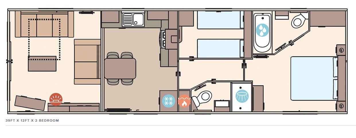 This brand-new, modern-furnished ABI Beverley (39'x12') luxury lodge is perfect for those looking for a detached, easy-to-maintain, bungalow-style property. The lodge has a modern kitchen with integrated appliances, a comfortable living room, two bedrooms and a shower room. The lodge also has parking for two cars.