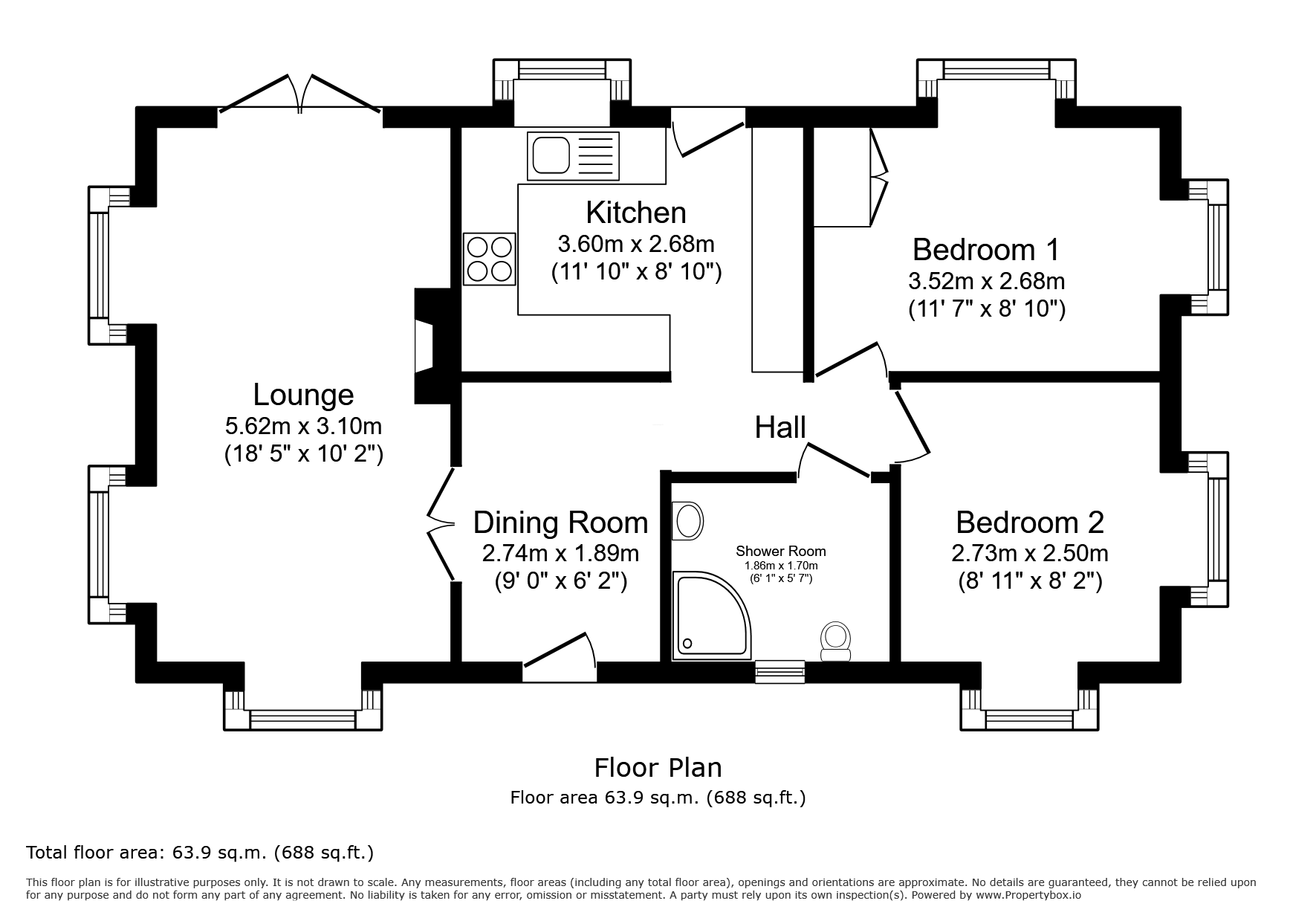 - Two bedrooms