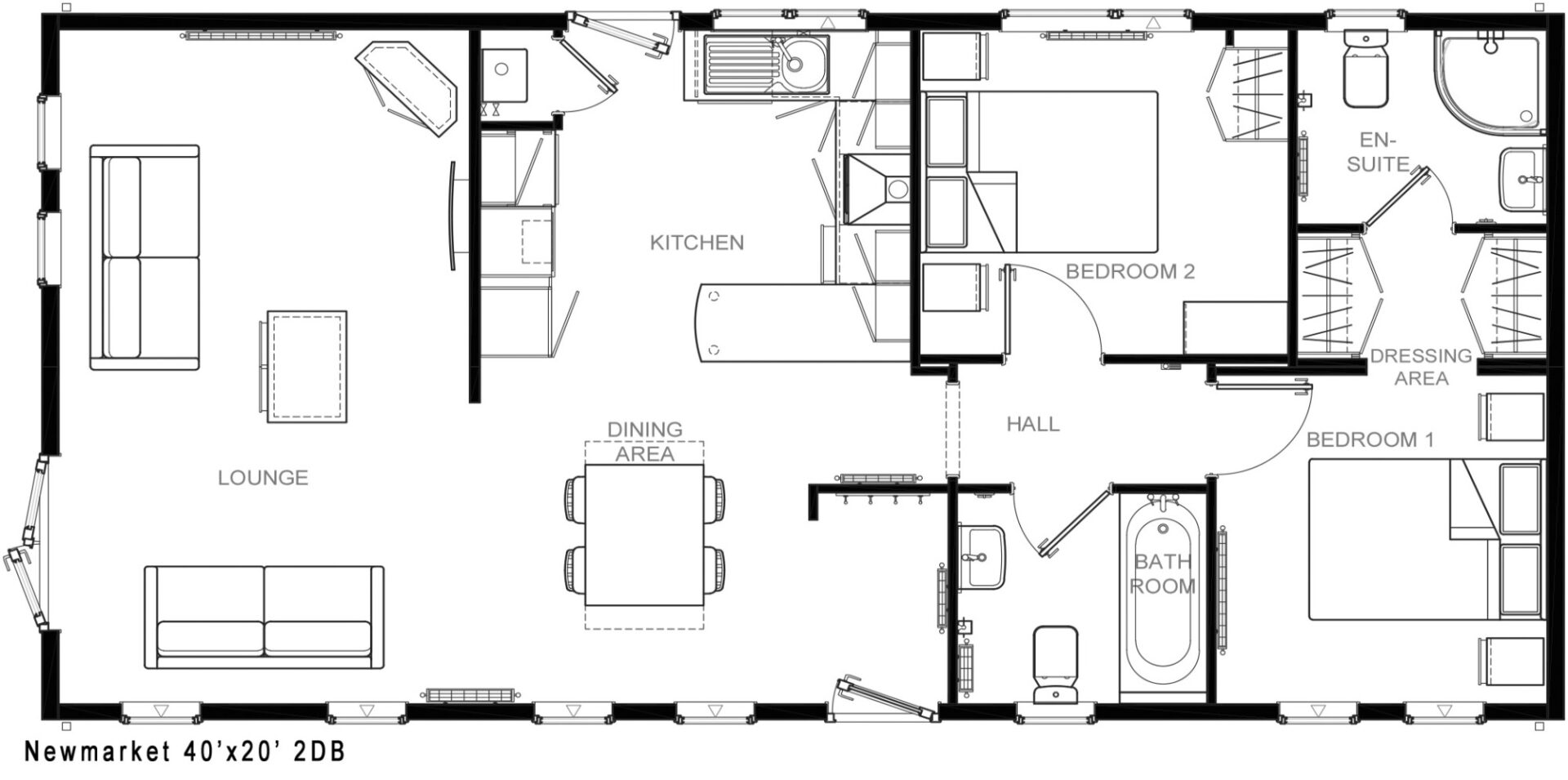 This brand new, modern furnished Omar Newmarket (40'x20') park home is perfect for those looking for a detached, easy to maintain, bungalow style property. The home features private parking, a kitchen and dining area, comfortable living room, two bedrooms and two bathrooms. The garden area is neat and easy to maintain.