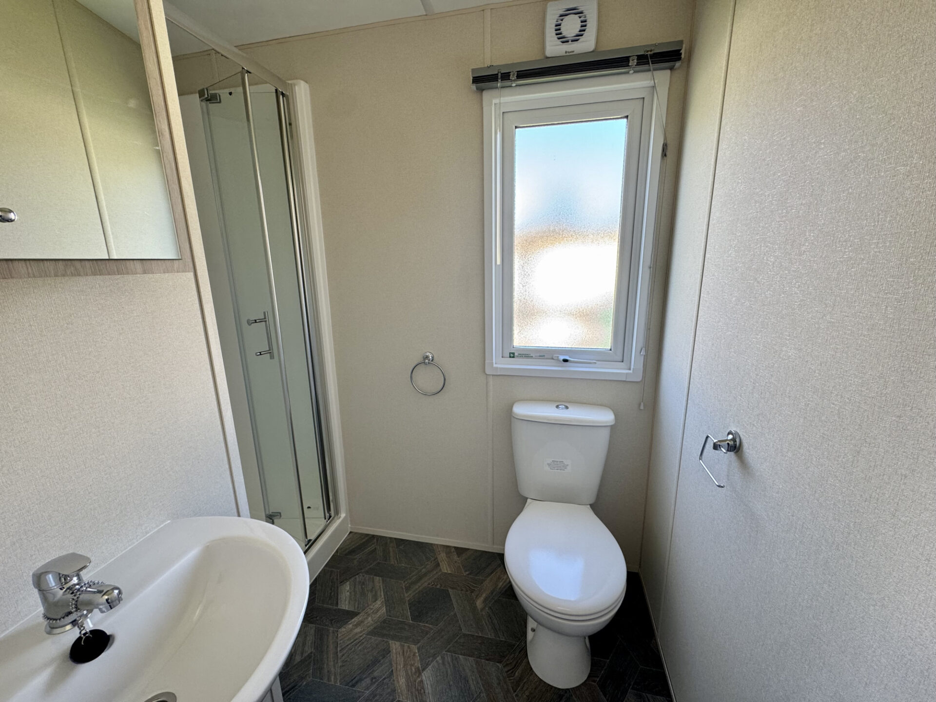 This brand new, modern, furnished Avalon lodge (28'x10') has an open plan kitchen, dining and living room area with integrated appliances. There is a double bedrooms, a second twin bedroom and a shower room.