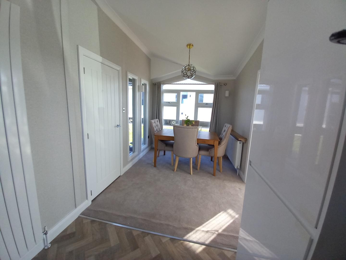 This Willerby Delamere (40'x20') park home is perfect for those looking for a detached, easy to maintain, bungalow style property in a modern secluded development. This top of the range park home is designed to a high, luxury standard with an intelligent floor plan. The home features a modern kitchen with integrated appliances, a comfortable living area with floor to ceiling windows offering views of Lundy Island, two double bedrooms, an en suite and a bathroom.
